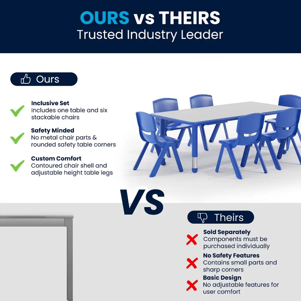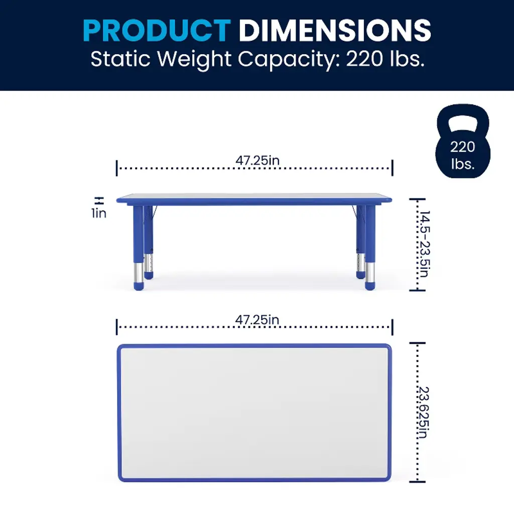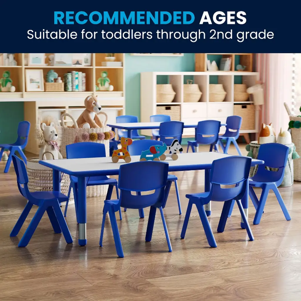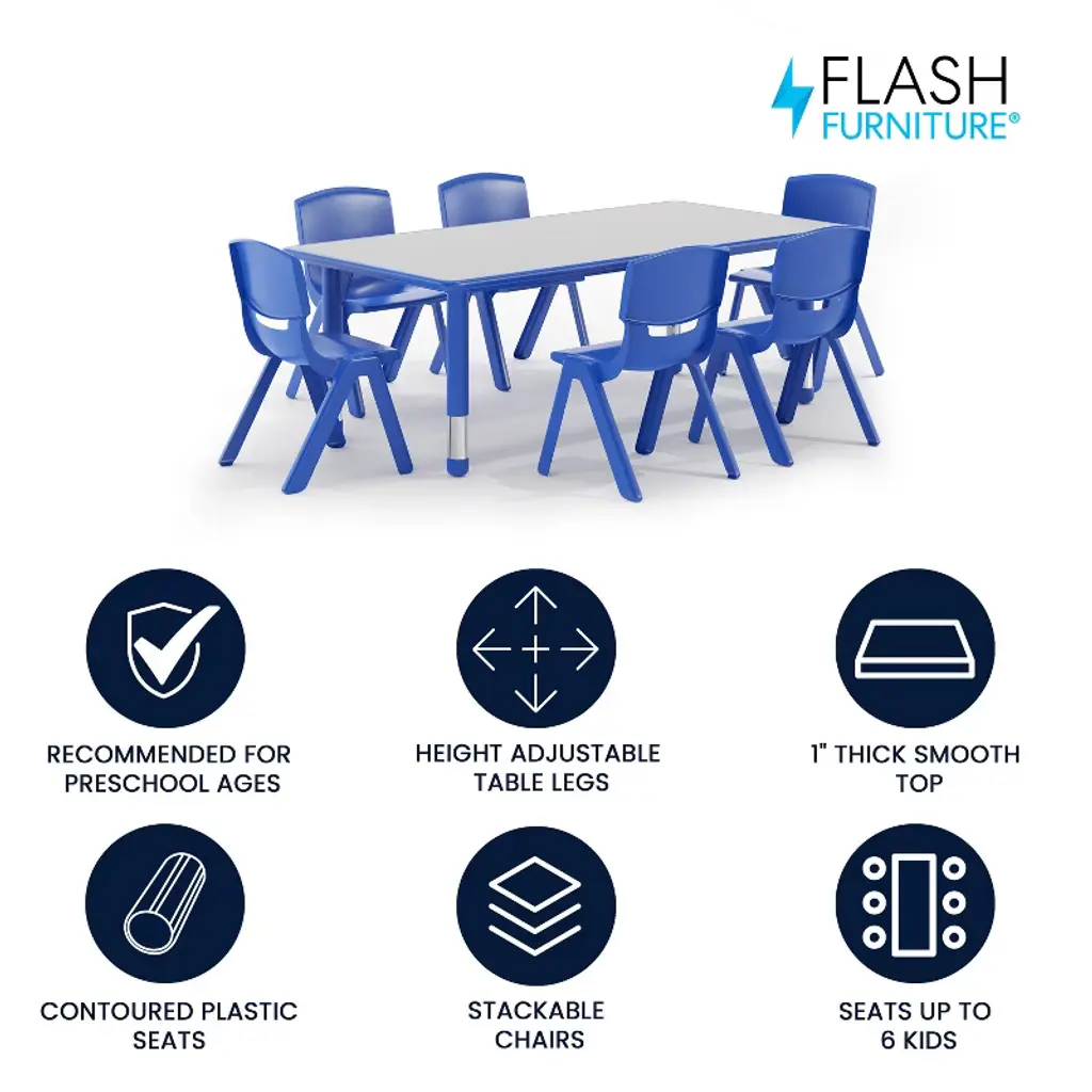 Flash Furniture 23.625''w X 47.25''l Rectangular Blue Plastic Height Adjustable Activity Table Set With 6 Chairs