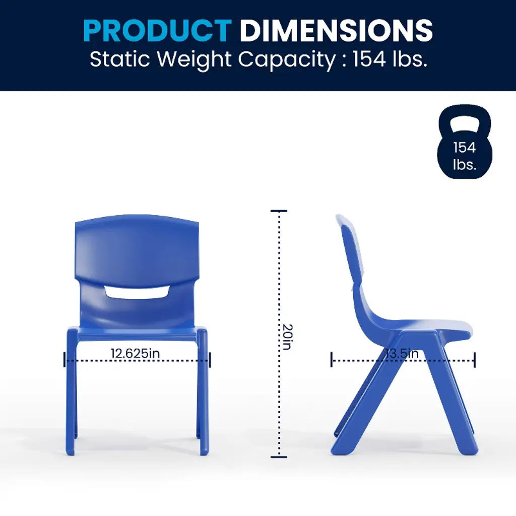 Encourage creativity in budding students with specialty designed classroom furniture to encourage learning. Designed for safety around rambunctious toddlers, the table has rounded corners and the plastic stack chairs are constructed of metal-free materials. This activity table set serves as a play table or kids dining table in the classroom or home. Built for comfort, the shell chairs are a one-piece contoured designed to promote proper posture. Not only are these chairs designed properly, but they are lightweight so kids can feel independent by moving the chairs themselves. With this play activity table set setup in the playroom you're always prepared for play dates and birthday parties. Low in maintenance, these toddler chairs and activity table wipe clean with ease after snacks. This play activity table set will be your all purpose set for meal time, snacks, crafts and learning activities. As your child grows out of the 10" seat chair, replace with our 12" plastic stackable school chair or 13.25" plastic stackable school chair. Additional Features: Back Size: 11"W x 10.75"H; Seat Size: 10"W x 10"D x 10.5"H, Contoured polypropylene shell, No metal parts prevent injury to small children, Recommended for Preschool Ages, Ideal for use in the home, classroom, preschool, daycare, church or playroom.
