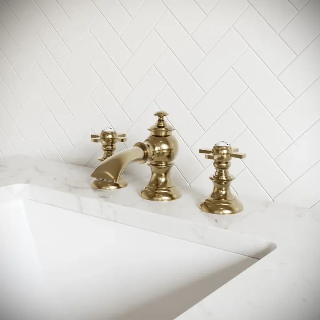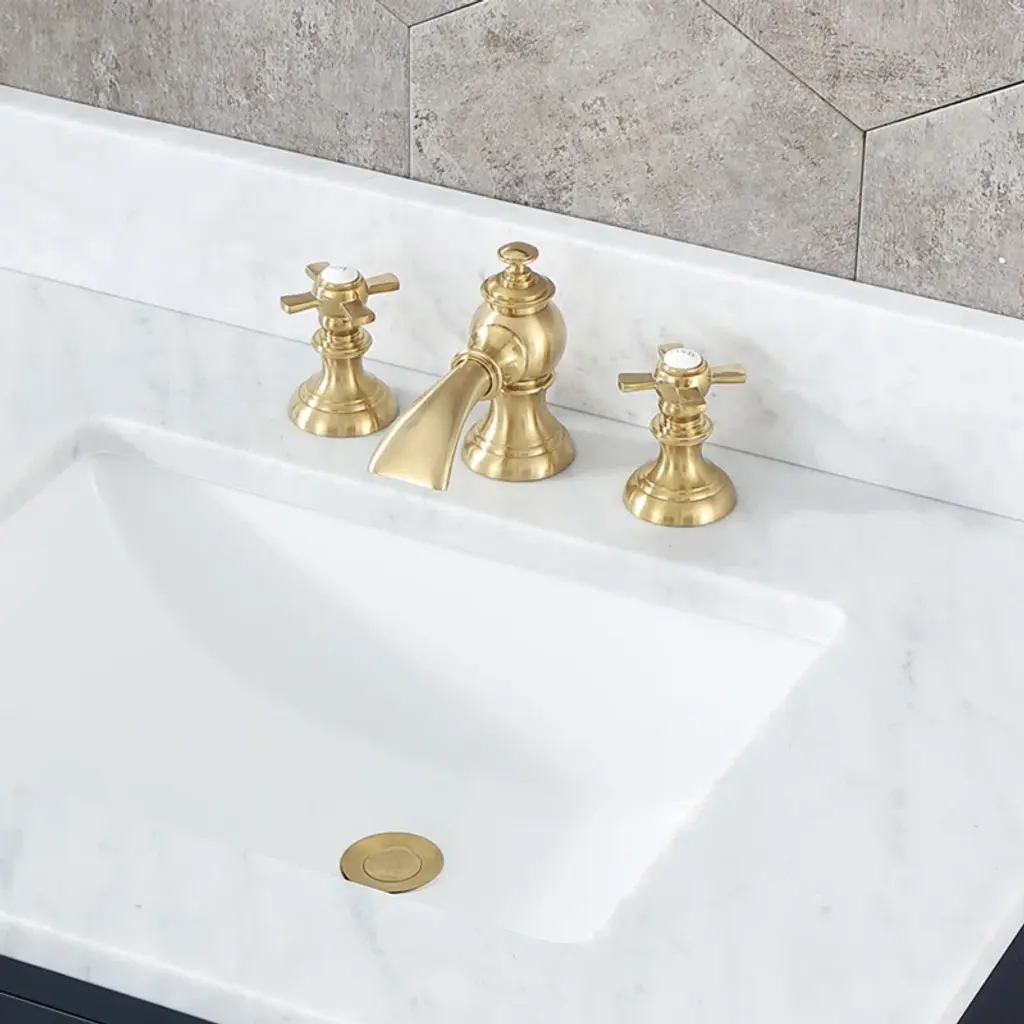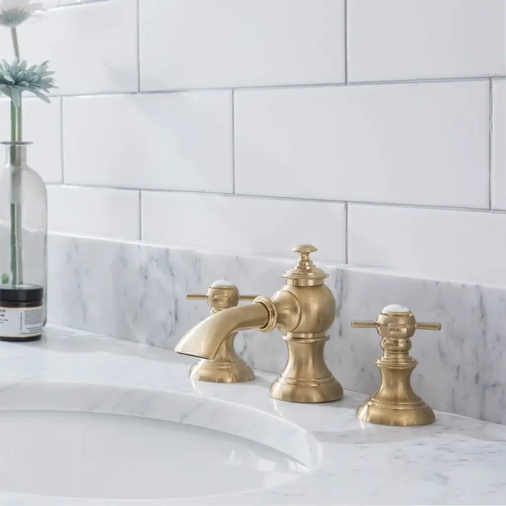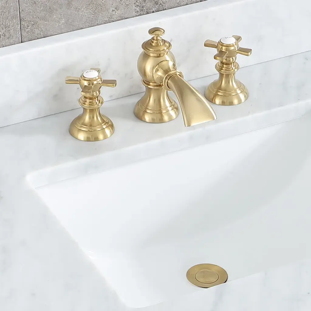 This flat cross widespread bathroom faucet with drain assembly is designed innovative modern manufacturing processes merge harmoniously. Simply select the style that meets your preferences and start enjoying a world-class faucet that you had a hand in creating.
