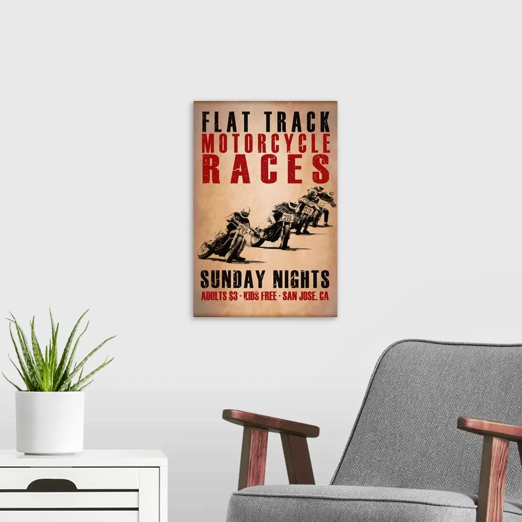 Flat Track Racers wall art for home and office decor. Discover canvas art prints, photos, mural, big canvas art and framed wall art in GreatBigCanvas.com's varied collections.