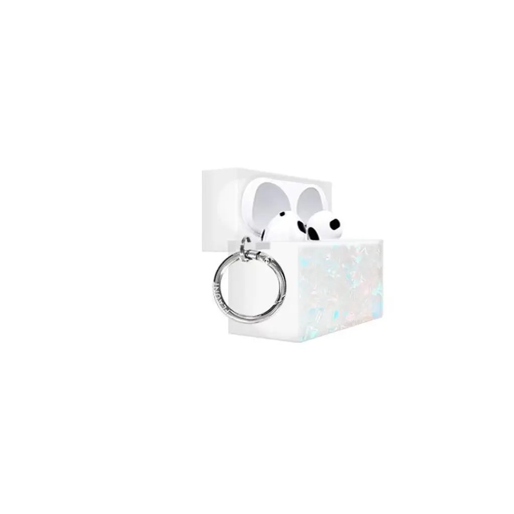 Flaunt Square Airpods Pro (1st/2nd Gen.) Case - Opal Shell With Silver Ring Clip