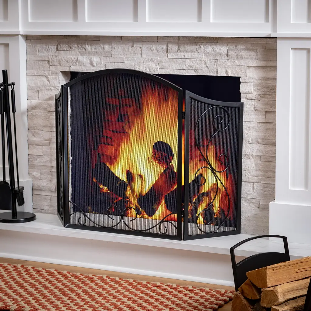 Add both beauty and function to your fireplace with our Cast Iron Fleur De Lys Fireback, a striking hearth accent that radiates timeless warmth and charm.This handcrafted fireback features a bold sunburst design with a serene face, symbolizing light, energy, and comfort. Made from solid cast iron, it’s built to reflect heat back into your room while protecting the masonry of your firebox. The elegant arched top and classic black finish make it a perfect fit for traditional and transitional fireplaces.