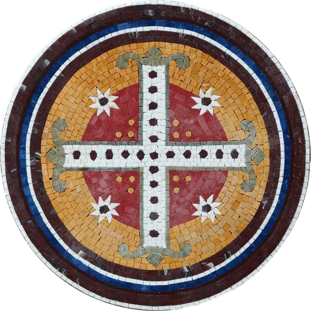 A medallion marble mosaic with a geometric design. A piece that is ideal for use on walls and floors indoor or outdoor.