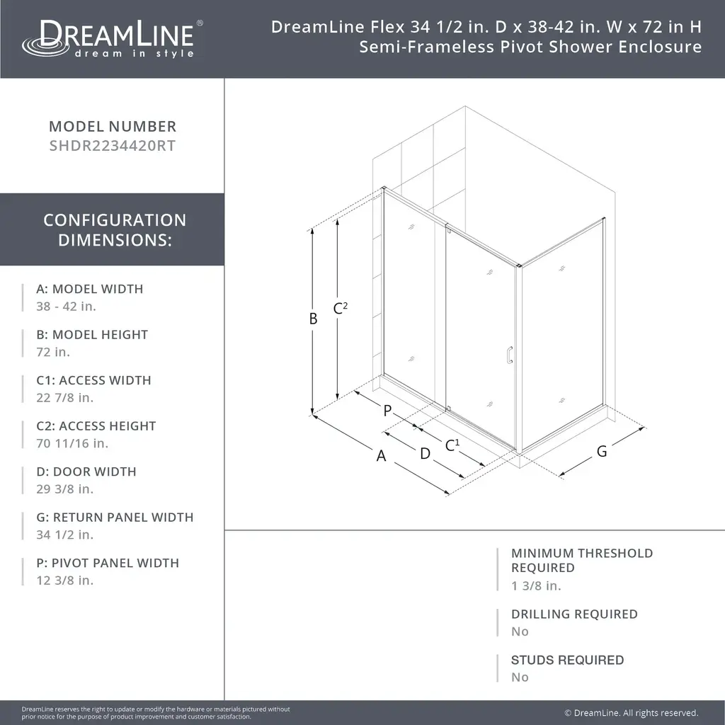 The DreamLine Flex pivot shower door or enclosure has modern appeal and a semi-frameless design that is ideal for those that want the beauty of frameless glass, but have budget or design limitations. The versatile Flex model combines cutting-edge pivot hardware and an impressive capacity for width adjustment, which simplifies installation and offers dependable performance. Complete your bathroom with the elegant and innovative look of the Flex model from DreamLine for the ultimate solution for your shower project.
