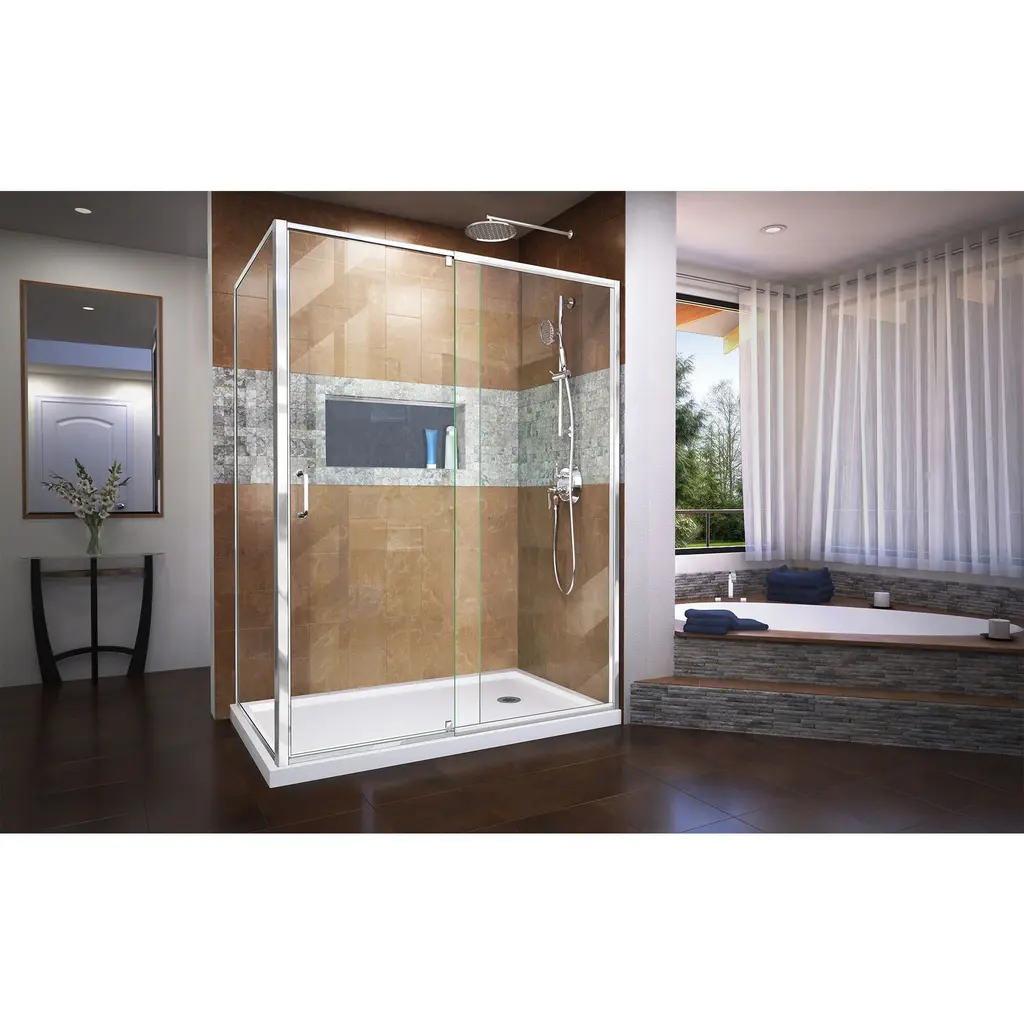 Flex 34 1/2 In. D X 38-42 In. W X 72 In H Semi-Frameless Pivot Shower Enclosure - 34 1/2 In. D X 50-54 In. W - Chrome