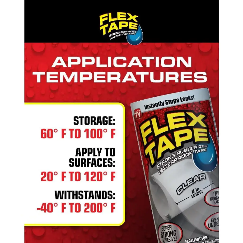 Flex Tape, Max, 8 In X 25 Ft, Black, Original Thick Flexible Rubberized Waterproof Tape