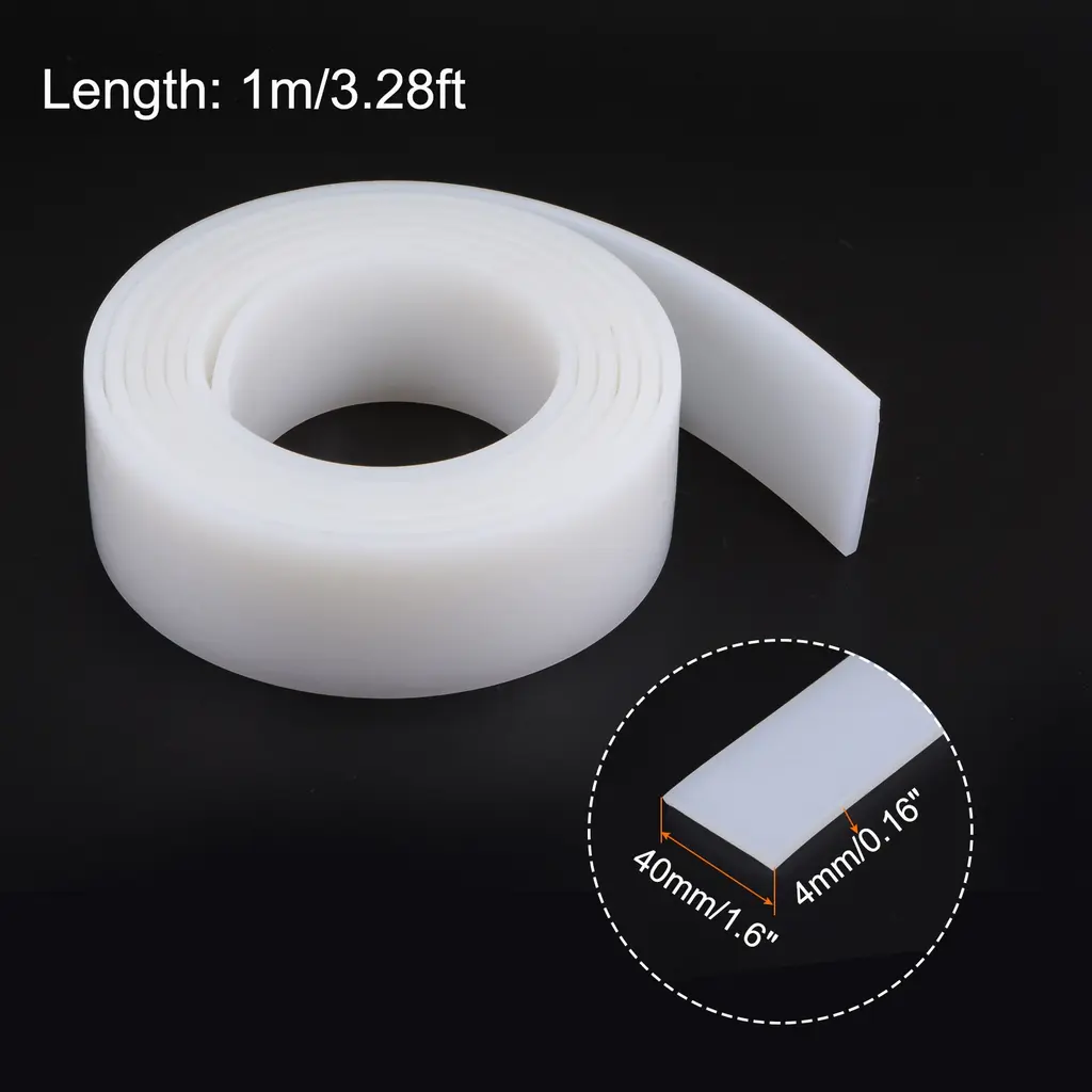 Size - Material: Silicone, Length: 2m/6.56ft, Width: 40mm/1.57", Thickness: 4mm/0.16"Material - Made of silicone, it has good resilience, shock absorption, waterproof, cushioning, anti-collision impact resistance, wear-resistant, long service life, flexibility, and other characteristics.Feature - Easy to cut with just a scissor and can be easily bent into any shape for any DIY project. It can also replace damaged silicone products of the same type.Application - Silicone strips can be used for anti-collision on the door or window side, which can reduce vibration and wear, and are also suitable for sealing, used in machinery, refrigerators, etc.Note - Please confirm the flexible solid silicone strip size you are ordering.This item is not self-adhesive and requires additional application of glue if required.The rectangular silicone strip can be used as a sealing and anti-collision strip. It has a smooth appearance, is soft and elastic, and is not accessible to age and deform.Made of silicone, it has good resilience, shock absorption, waterproof, cushioning, anti-collision impact resistance, wear-resistant, long service life, flexibility, and other characteristics.Silicone strips can be used for anti-collision on the door side, which can reduce vibration and wear, and are also suitable for sealing, used in machinery, refrigerators, etc.Easy to cut with just a scissor and can be easily bent into any shape for any DIY project. It can also replace damaged silicone products of the same type.Notice: Please confirm the flexible solid silicone strip size you are ordering.This item is not self-adhesive and requires additional application of glue if required.