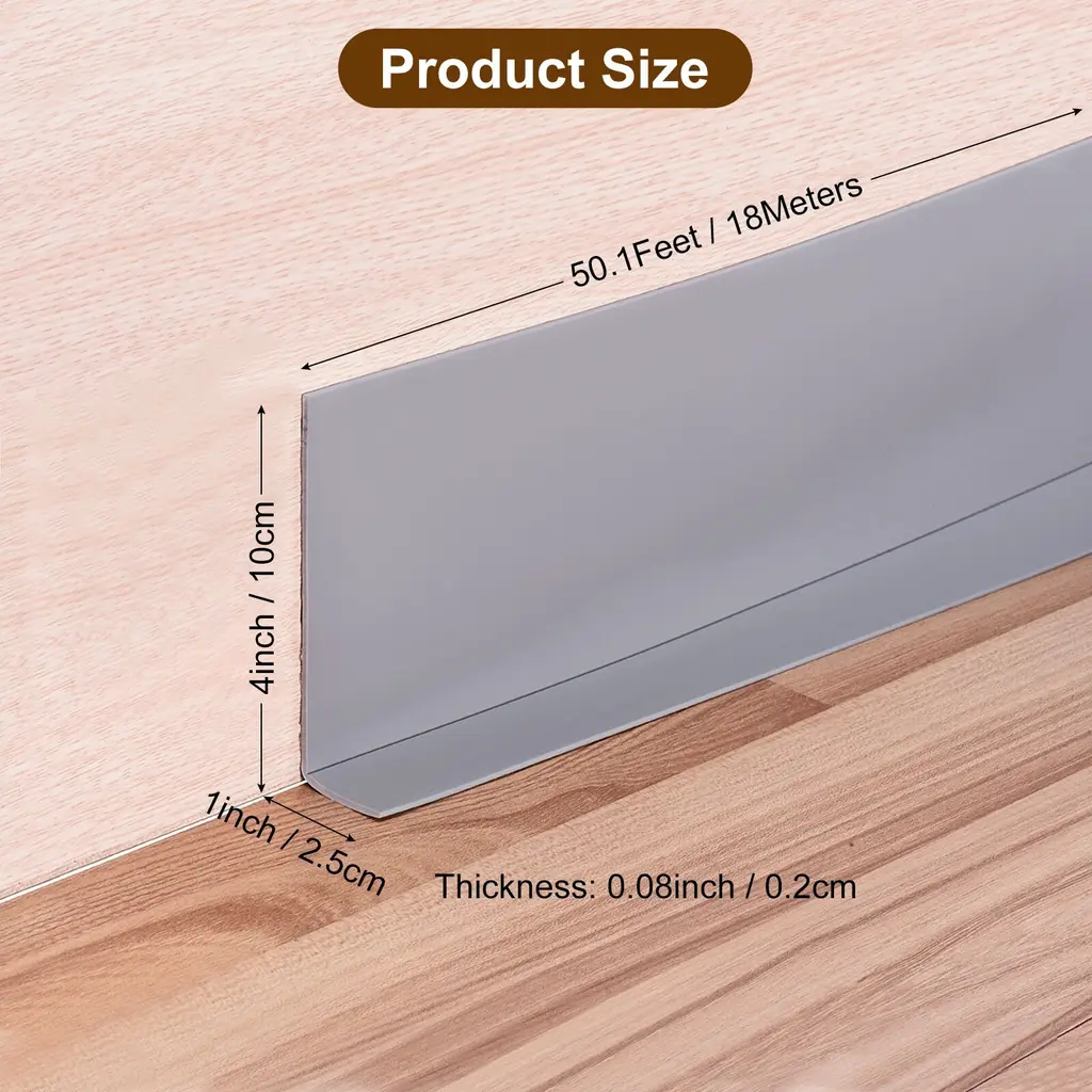 Baseboard molding trim for covering gaps between floors and walls in garage, living room, bathroom, bedroom, RVs, kitchen, during house renovations.Specification:Material: PVCColor: WhiteLength: 39.37Ft/12mWidth: 5in/12.5cmThickness: 0.08 inch/0.2 cmPackage Included: 1 x roll of baseboard molding trimAdvantage:The wall baseboard molding is made from PVC material, flexible, wear-resistant, and not easy to fade or deform even with prolonged use.It features a toe design that deals with various situation, especially helping you hide various flaws and uneven surfaces.Just simply clean the wall surface, then cut the length of the wall base you need then apply glue on the wall base for installation.This wall base molding trim has a smooth and even finish, making it easy to clean. Just give it a wipe with a damp cloth and dry it off.Note: For temperatures below 68°F, use a hair dryer to warm the adhesive strip for optimal performance.