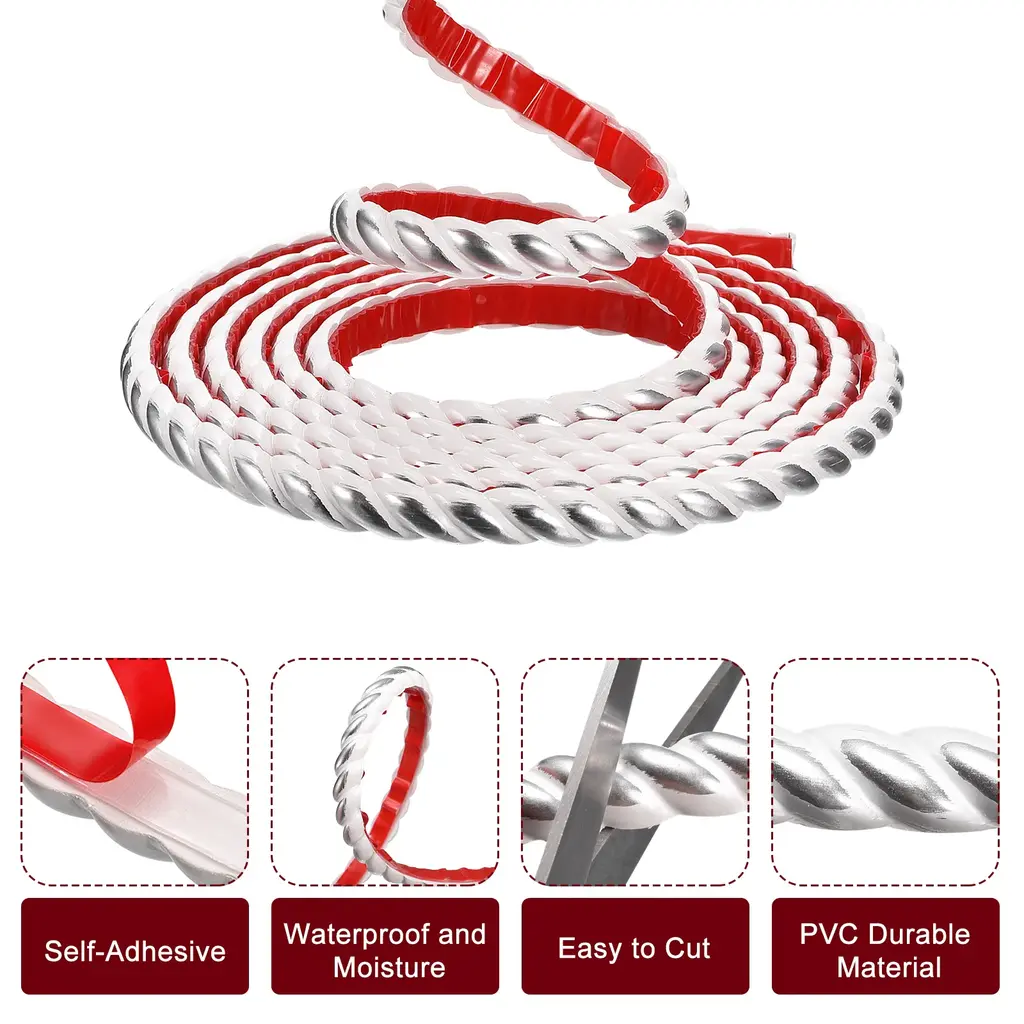 Flexible Wall Trim Molding Trim, For Home Decor - White Silver - 0.4" X 10ft