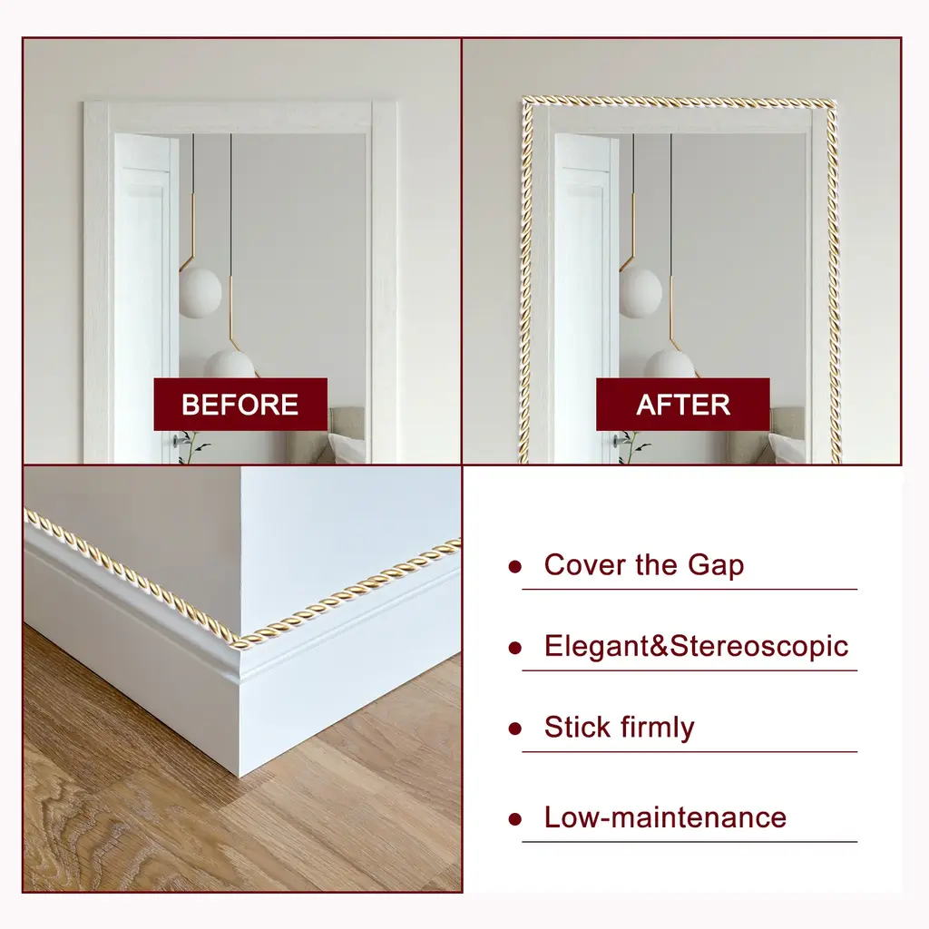 Description:[Durable and Flexible] Made of PVC material, good bending ductility, waterproof, moisture, and water-resistant, corrosion and oil-resistant, flexible, long service life, no residue after removal, easy to clean with a wet towel.[Peel and Stick] With glue on the back, no glue is needed, and no need to repeat the tape, just tear off the protective film that can be installed, a smooth surface, clear pattern, and waterproof, long-lasting.[Easy to Use] Measure the molding trim and cut to the length you need, tear off the adhesive, and stick to a smooth surface, no need for a caulk or other special tools, everyone can quickly DIY trim and make your home look elegant.[Widely Applicable] Peel and stick trim molding can stick to almost any corner(tiles, plastic, marble, metal, glass, wood, smooth wall.) Perfect for bathroom, bedroom, living room, kitchen, TV background wall, molding, baseboard, ceiling, border, cabinet, mirror, and more.SpecificationSize: 6.56 Ft x 0.39" x 0.28"/2 Meter x 10mm x 7mm(LxWxH)Color: White SilverMaterial: PVCPackage Includes:1pcs x Self-Adhesive Wall Trim Strips