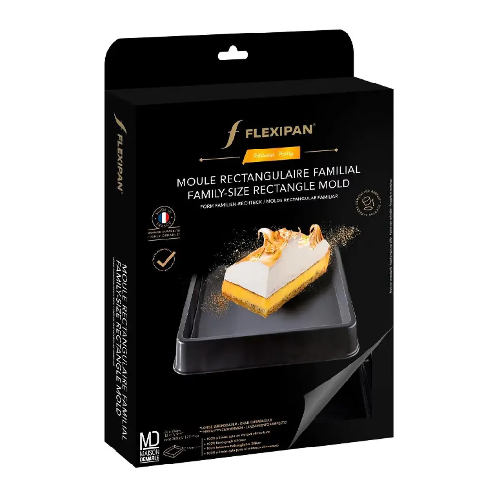 The Flexipan® Family-Size Rectangle Mold is the perfect mold for big dishes and desserts: lasagna, casseroles, shepherd’s pie, big-batch brownies, and more. The search is over, this is the Flexipan® mold you’ve been looking for! Whether you’ve got a big sweet tooth or you’re partial to savory treats, the Flexipan® Family-Size Rectangle Mold will suit all your mouthwatering delights and every occasion: amuse-bouches, starters, mains, snacks, and massive desserts. It’s the perfect mold to use with friends or family, for special holiday and birthday dishes. The recipe possibilities are limitless with this 100% platinium silicone mold and it’ll give your delicious bakes a clean, professional finish. The mold is designed for extremely generous portions. With a depth of 1.57” and capacity of 121.7 fl oz, it’s designed for enticing scalloped potatoes, massive croque-monsieurs, baked macaroni and cheese, and much more !