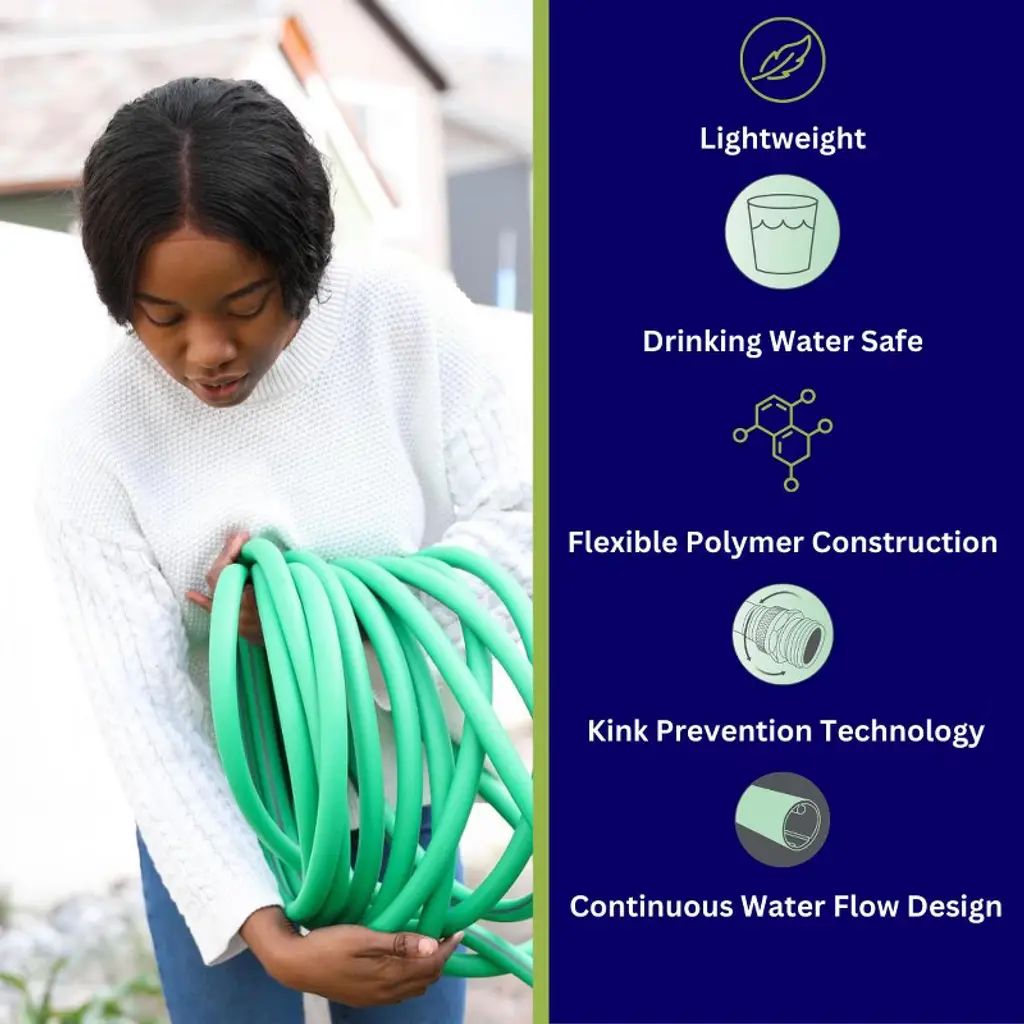 The Flexon Featherlite 5/8" Ultra Flexible Drinking Water Safe Garden Hoses are the ultimate solution for easy watering. Designed with lightweight, ultra-flexible material, this hose offers exceptional kink-resistance and maneuverability, making it ideal for gardening, lawns, and car washing. Its durable construction ensures long-lasting performance, while the 5/8" diameter provides optimal water flow for efficient irrigation. Made in the USA with globally sourced components, these hoses combine reliable quality and ease of use, making it perfect for both beginner gardeners and experienced landscapers. Order today for an effortless watering experience!