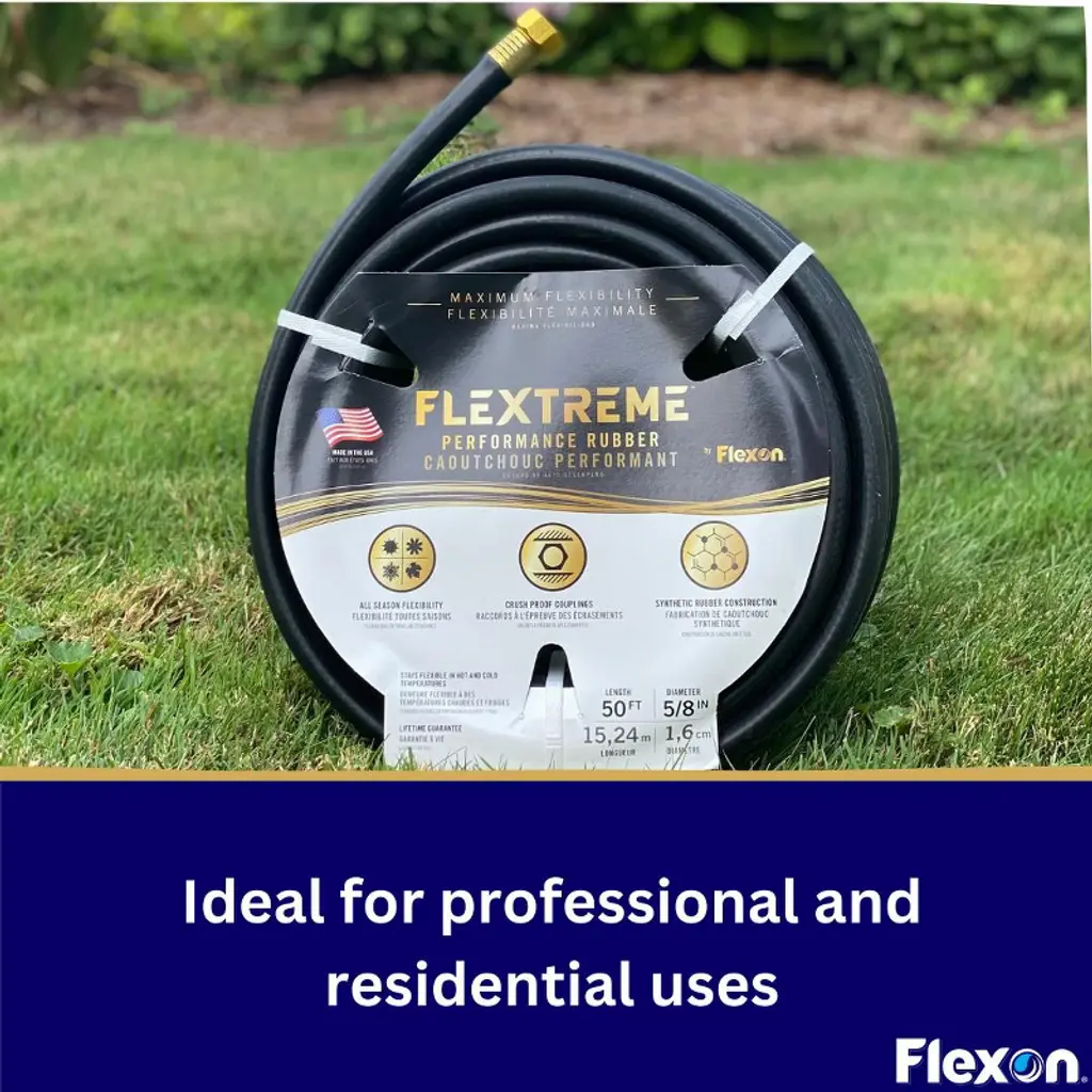 Flexon Flextreme 5/8" X 50ft Black Synthetic Performance Rubber Garden Hose