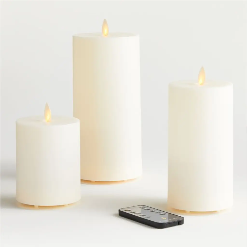 Our flameless candle enhances your outdoor space with lifelike flickering, a warm glow and a charming faux flame dancing atop a matte white pillar. Safe and mess-free, the outdoor candle creates atmosphere and worry-free illumination on a bistro table, dining table, hot tub surround or anyplace a burning candle would be impractical. Use the remote control (sold separately) to turn the pillar on, or set the timer for five automatic hours of delightful and low-maintenance outdoor candlelight every evening.