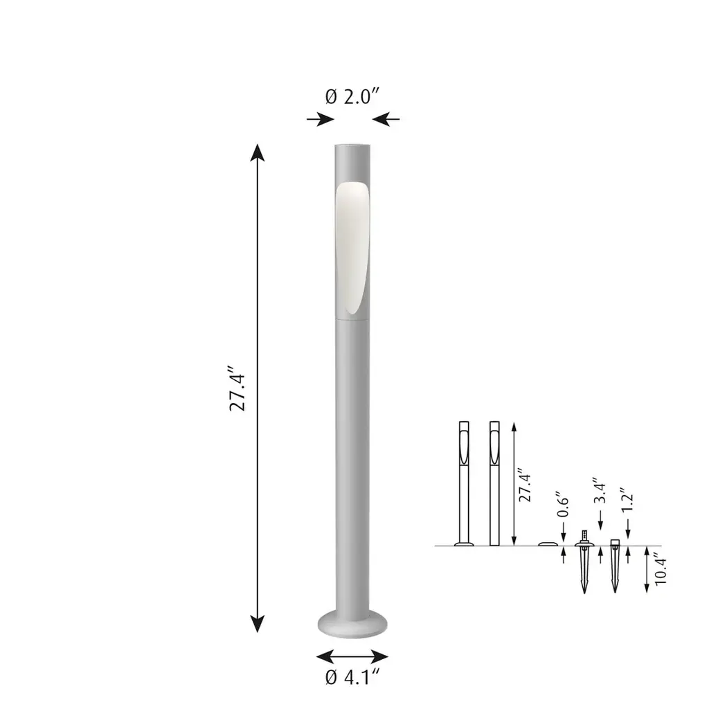 Flindt Garden is a flexible bollard that is scalable in height and available with three different mounting options. Flindt Garden balances simplicity and refinement in a sculptural design that blends beautifully into any garden or outside living space. The light distribution is directed downward on one side of the bollard. The flared aperture creates an organic shaped light pattern covering nearly 180 °. Two COB LEDs are housed in the top of the fixture and are shielded from direct view for glare control. The fixture can be horizontally rotated 20 ° and locked after the base plate is installed for optimal positioning.