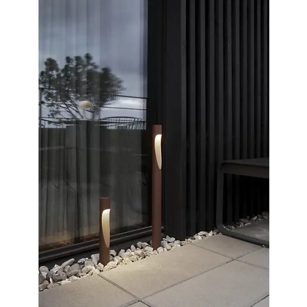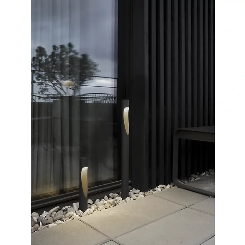 The Flindt Garden Short LED Bollard from Louis Poulsen is the brainchild of award-winning Danish designer and architect Christian Flindt. Designed for outdoor living spaces like private parks, courtyards, and gardens, it provides instant illumination without compromising quality or design. The idea behind its sculptural design originated in 2011 when a refined bollard was needed to illuminate a park next to an exhibition at Kunsthal Brænderigården, now Viborg Kunsthal. The fixture's success led to further development, optimizing material quality, light distribution, and efficiency. Introduced as the Flindt Bollard at the 2014 Light + Building trade fair, it has since elegantly complemented various outdoor settings, offering functional and pleasant illumination while enhancing safety. In 2021, Louis Poulsen introduced the downscaled Flindt Garden bollard, designed for easy on-the-spot installation, significantly improving light quality and design in commercial and residential outdoor spaces. Multiple bollards can be powered by a single power supply, making them ideal for repetitive installations. The flexible and minimalist design blends seamlessly into natural or urban garden environments.