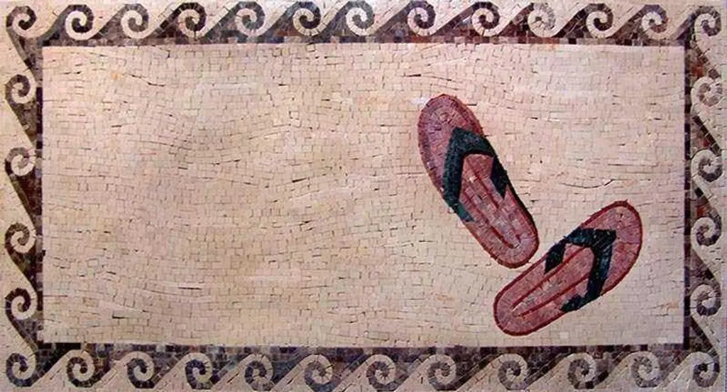 Introducing the Flip Flop Mat Contemporary Mosaic, a stunning addition to your home décor that seamlessly blends functionality with artistic charm. This exquisite mat features a meticulously crafted handmade mosaic design, showcasing a delightful pair of flip flops that instantly captures the essence of laid-back leisure and sunny days spent at the beach.Each mat is thoughtfully designed using all-natural marble, sourced for its durability and unique aesthetic properties. The natural variations in the marble lend a distinct character to each piece, ensuring that your mat is one-of-a-kind. The intricate mosaic patterns not only bring a touch of elegance to your entryway, bathroom, or patio but also serve as a conversation starter that reflects your love for style and comfort.The Flip Flop Mat Contemporary Mosaic is not just about looks; it is also built to withstand daily wear and tear. Ideal for both indoor and outdoor use, the mat is resistant to moisture and easy to clean, making it the perfect choice for high-traffic areas. Whether you want towelcome guests into your home or create a welcoming atmosphere by the pool, this mat does it all with flair.Adding the Flip Flop Mat to your space not only enhances its aesthetic appeal but also brings a sense of relaxation and joy. Imagine stepping onto this beautifully designed mat after a long day, instantly transported to a serene coastal escape. With its vibrant colors and playful theme, it’s a reminder to embrace life’s simpler pleasures.Elevate your home décor with the Flip Flop Mat Contemporary Mosaic—where craftsmanship meets contemporary design, and where every step feels like a walk on the beach. Make it yours today and redefine the way you think about your floors.