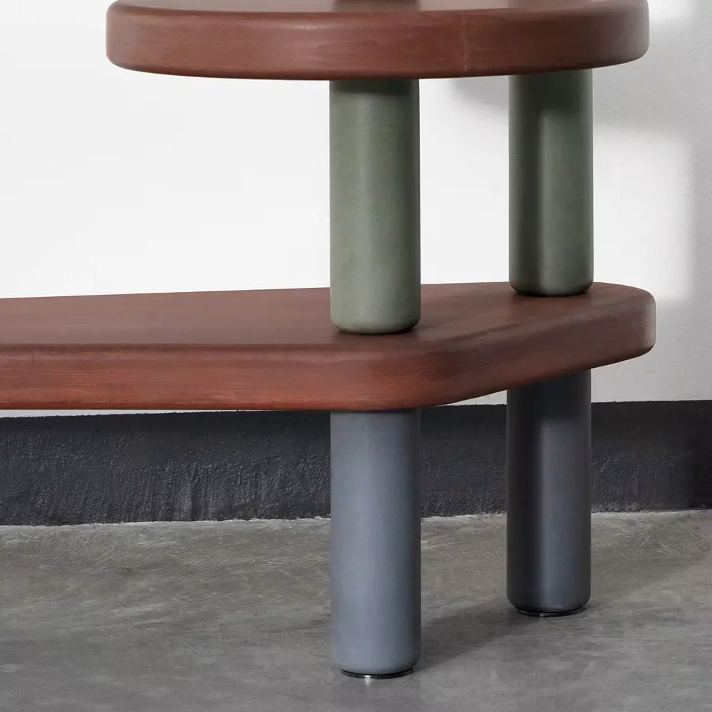 This bookcase is part of the Flipper Collection designed by Marialaura Irvine. Game, color and freedom are the keywords of this new collection based on the principle "by doing less, is doing more". A few ad hoc designed elements allow for infinite combinations that give life to bookcases, tables, and coffee tables that are perfect for any environment. Three cylindrical concrete modules with different heights and rounded edges are the supporting structure of ever-changing furnishing accessories.
