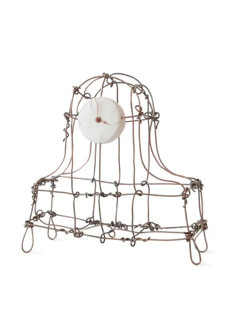 The clock tells a story about time; how we look at objects, judge them, how we feel about them and how our vision towards them changes within time. It is an object that shows only the skeleton of what it could be, yet representing a function in full state. The objects exist between fiction and reality, it’s ultra-transparent and seems to float in space by almost getting absorbed by its surroundings. In this work, the construction looks like a tiny ink drawing. The added ceramic part determines a function: a clock.