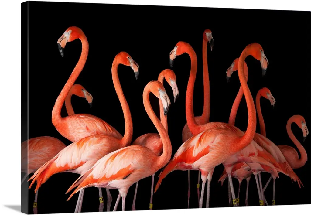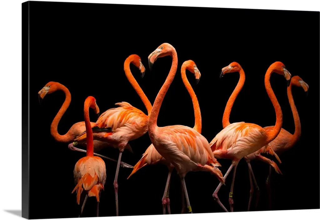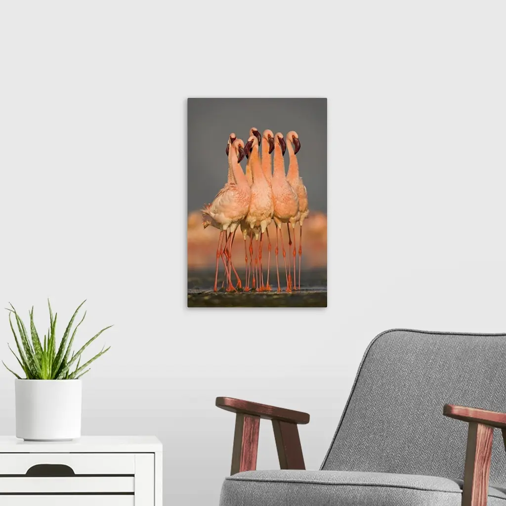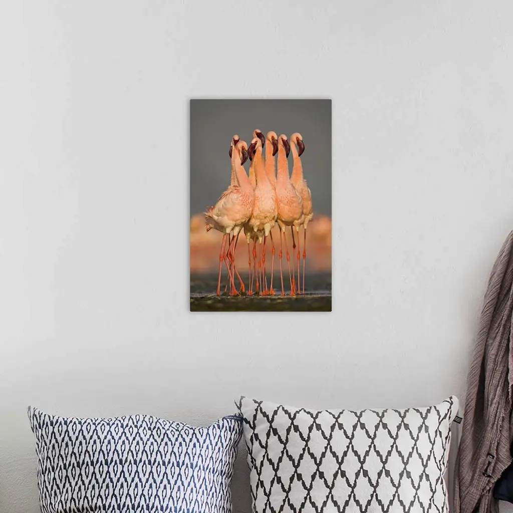 Flock of eight flamingos wading in water, Lake Nakuru, Kenya wall art for home and office decor. Discover canvas art prints, photos, mural, big canvas art and framed wall art in GreatBigCanvas.com's varied collections.