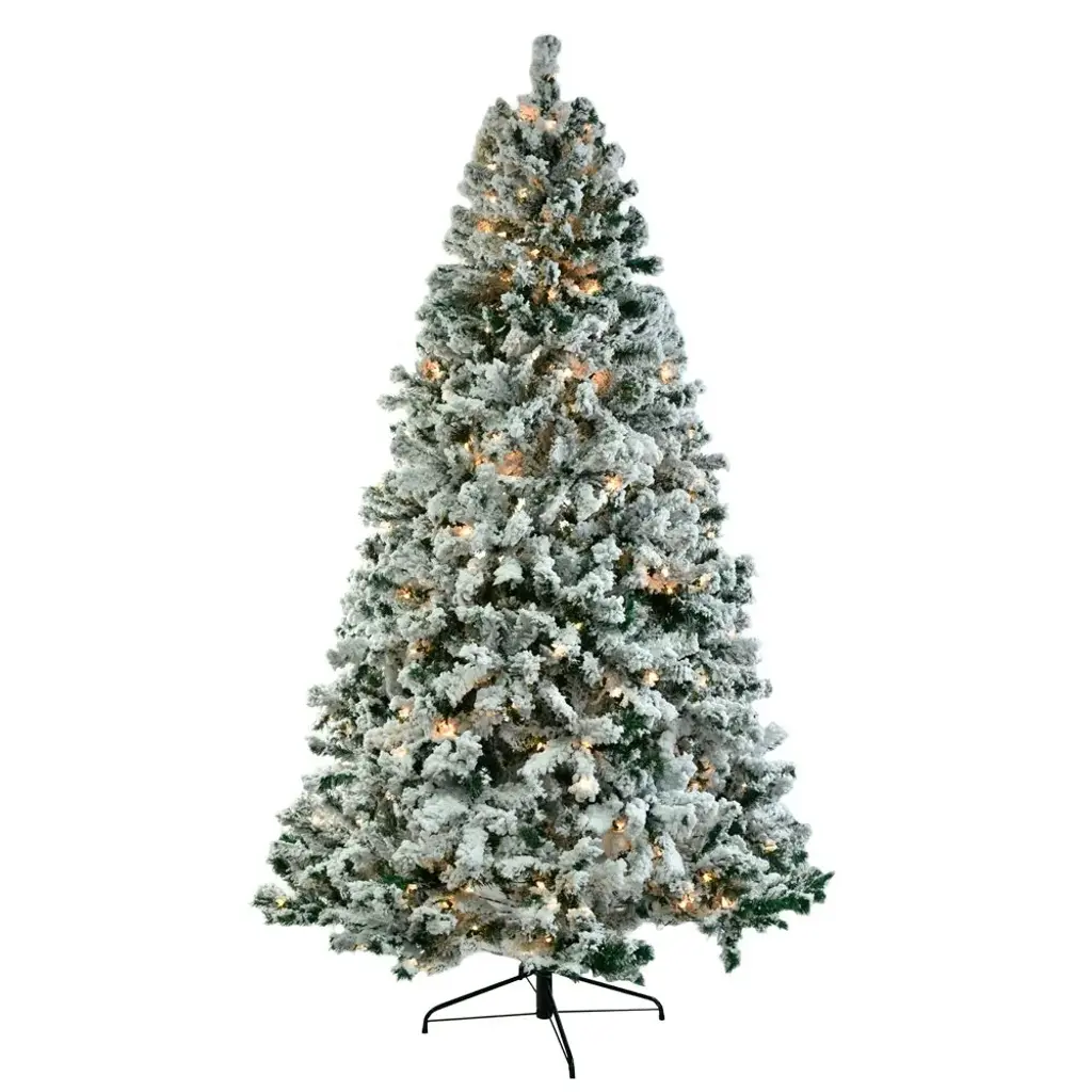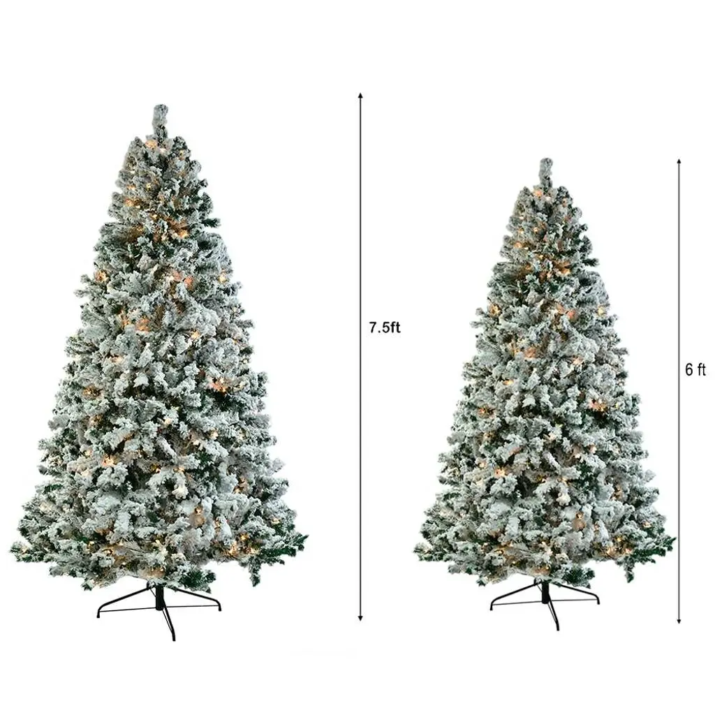 Make the holidays magical with the lush, enchanting branches of this flocked Christmas tree. The tree comes in your choice of pre-lit or unlit and varied heights to suit your space. A metal stand is included for secure and easy set up that you can enjoy year after year.Features: