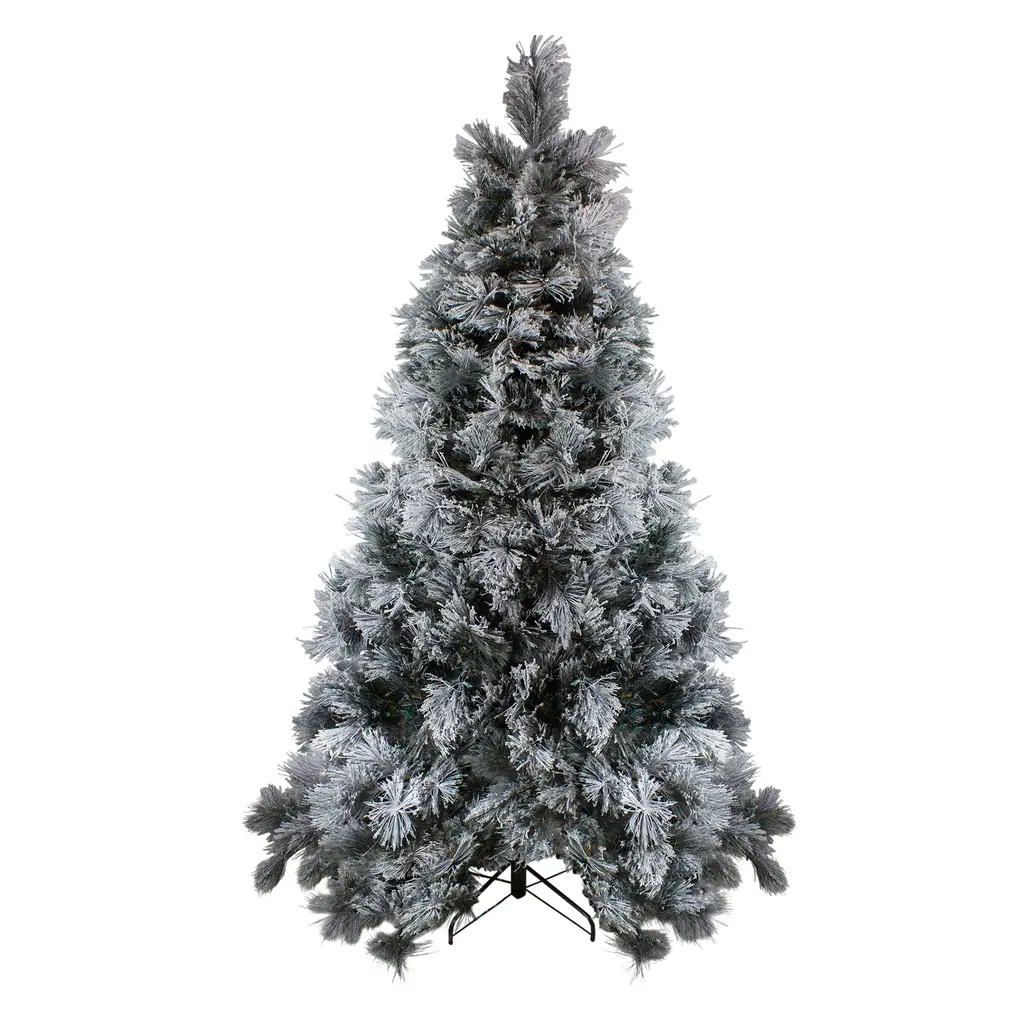 This beautiful black tree makes a bold statement. Strategically flocked branches pop against the dark tips lending a wintry night feel. Perfectly sized for smaller spaces. Truly a must-have in your holiday decor. Product Features: Unlit 3" wide tips Full profile tree Hinged branch construction easy assembly (including stand) Comes with a free black metal tree stand Material(s): PVC/PE/metalNote: Branches are compressed for shipment and need to be fluffed out upon arrival to look like the photo.