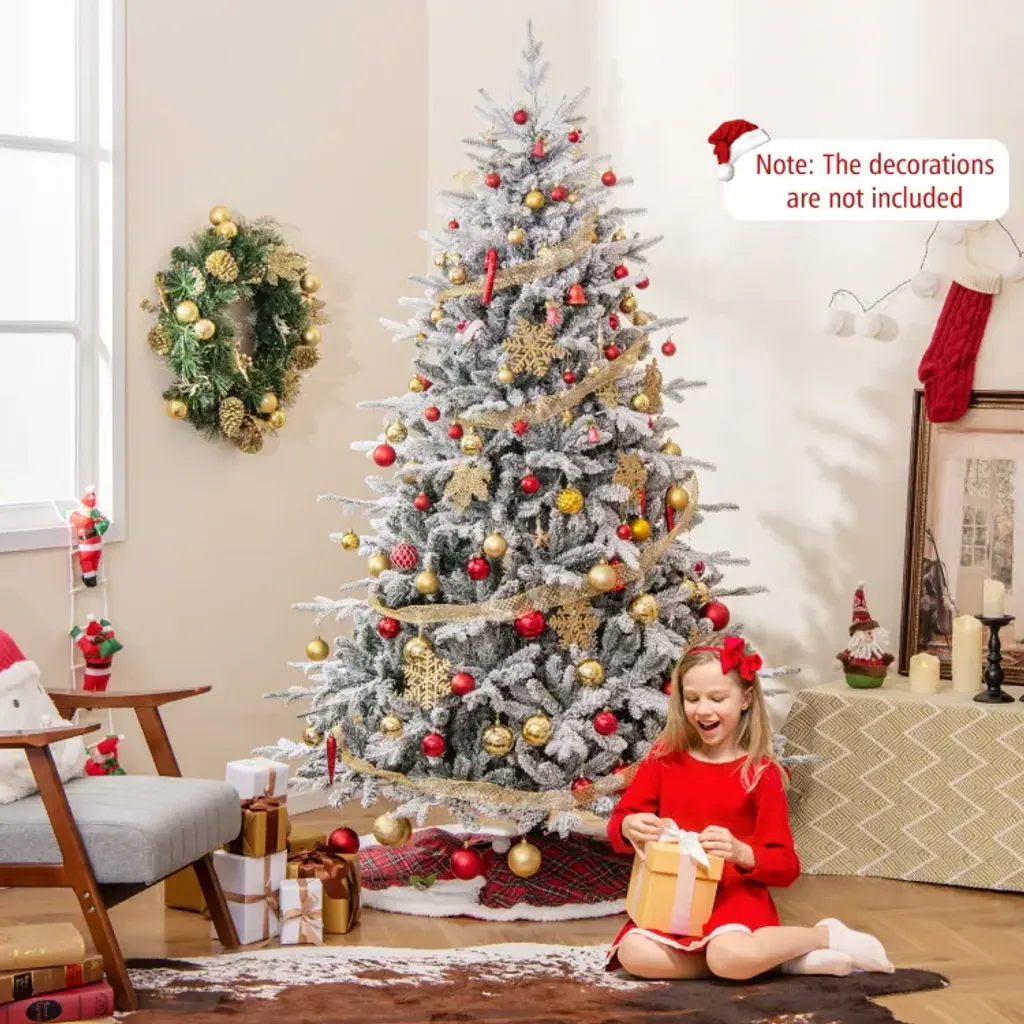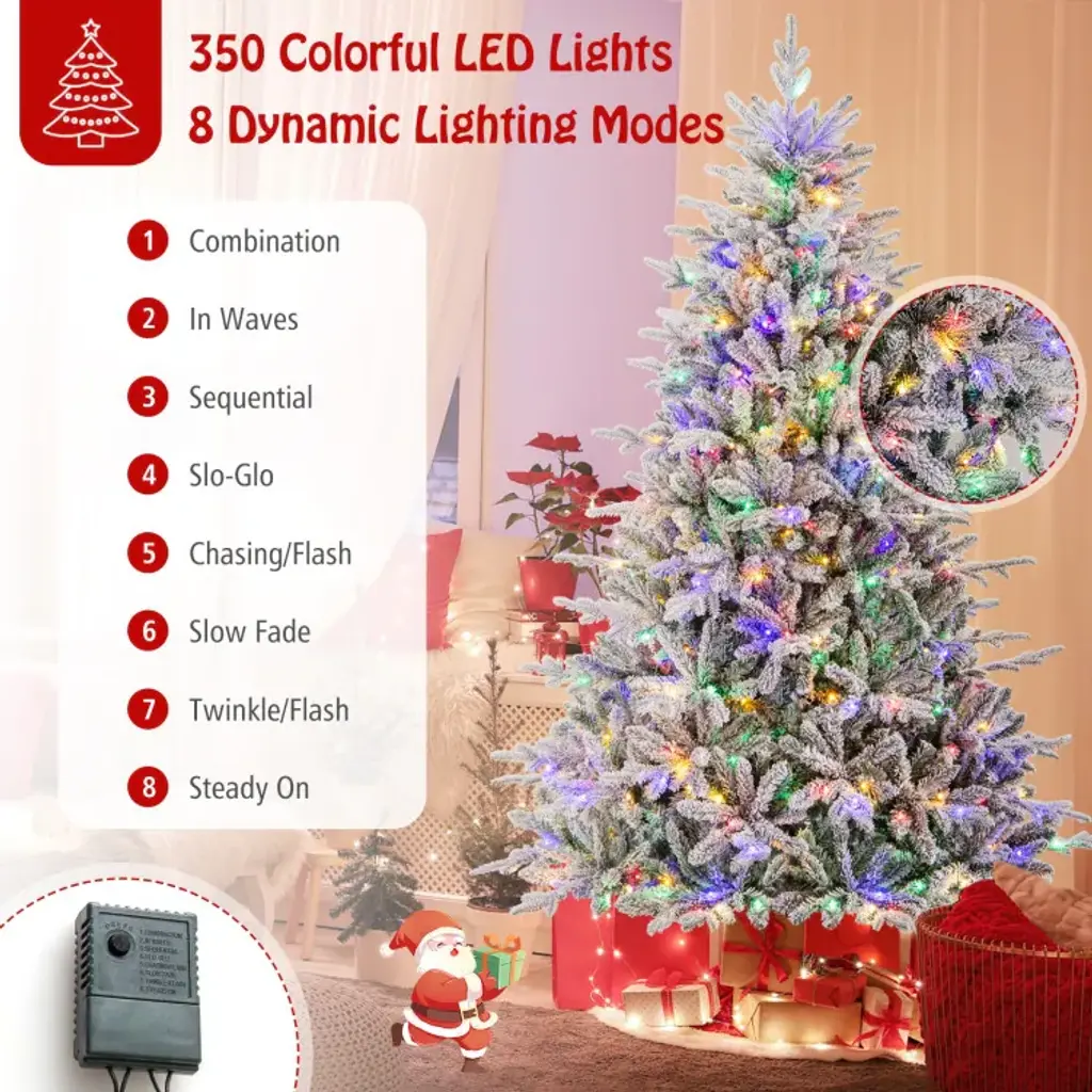 Flocked Christmas Tree With 8 Lighting Modes And Multi-Color Led Lights - 7 Foot