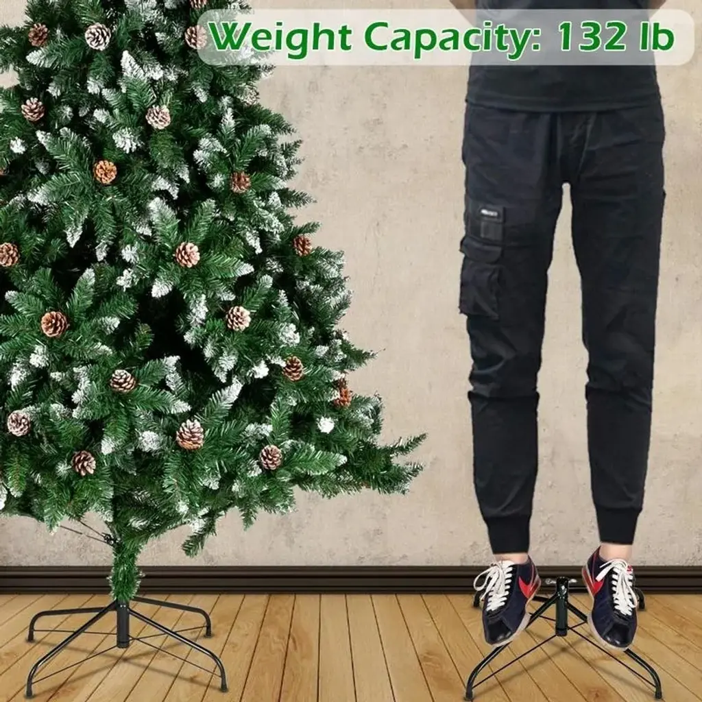 Help welcome in the Christmas spirit this season with this lovely unlit faux Christmas tree, the ideal solution for your empty living room on the snowiest of holidays. With a unique flocked texture, a robust metallic stand, and lifelike greenery galore, this tree, in your choice of a six- or seven-foot height, offers majestic holiday grandeur at its finest.Features:Size Options:6 Foot:7 Foot:
