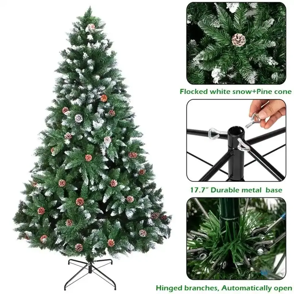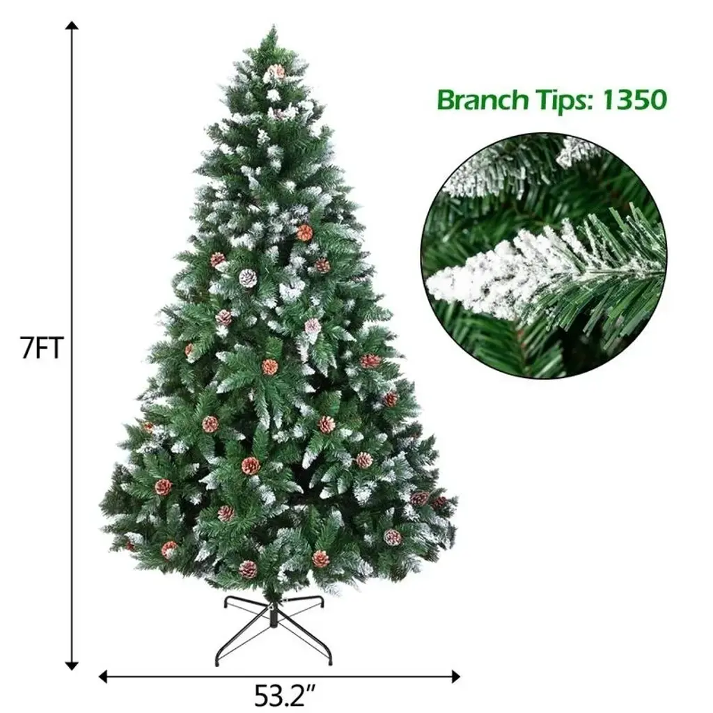 Flocked Unlit Faux Christmas Tree W/ Pine Cone Accents - 7 Foot