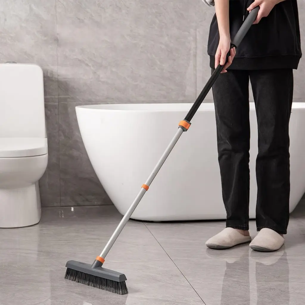 Enhance your cleaning routine with this versatile two-in-one floor brush. Combining durable bristles with a rubber scraper, it effortlessly tackles stubborn stains and removes moisture for a thorough clean. Designed for multi-surface use, it’s perfect for concrete, tile, marble, and more. Whether cleaning bathrooms, kitchens, or garages, this tool ensures efficiency and reliability. The plug-and-play design keeps the brush head securely in place for consistent performance. Ideal for homes and commercial spaces, this durable and lightweight brush is your go-to cleaning solution for sparkling floors every time.Features:Specifications: