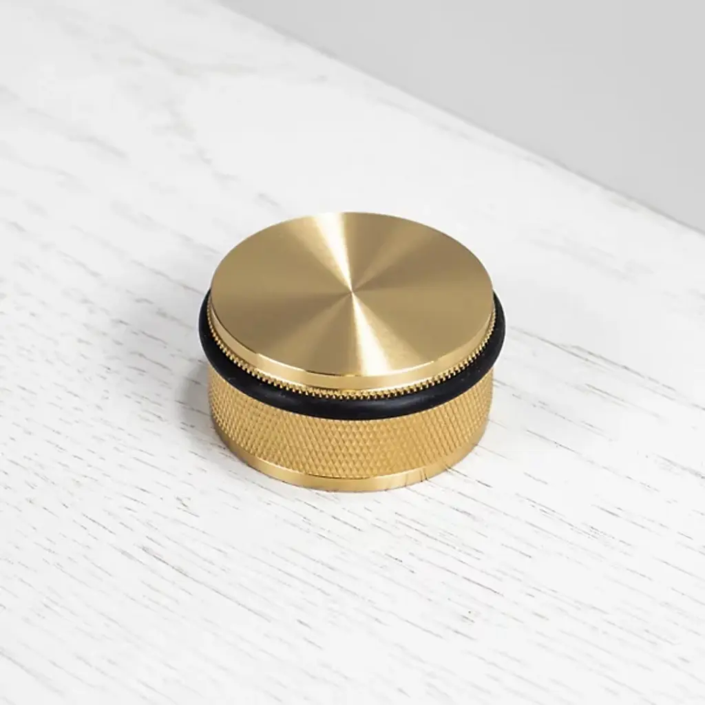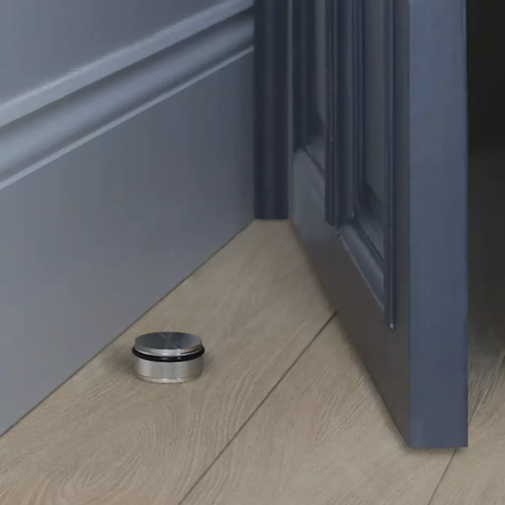 A safe stopping point with a captivating industrial edge. The Floor Door Stop from Buster + Punch is all its name implies, and more, providing a starkly charming accent to inside spaces. More than just a robust metal disc, its sides are accentuated by the Buster + Punch signature cross-knurl pattern, its grippy diamond pattern texture providing easy repositioning, while a black band of rubber acts as a buffer, protecting the door’s lower reaches, and reducing inadvertent noise from opening and closing.