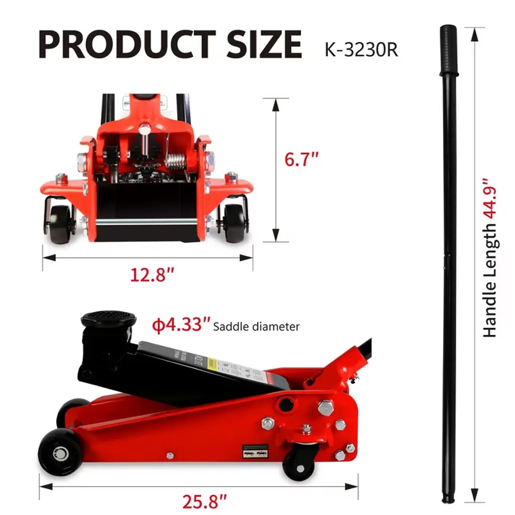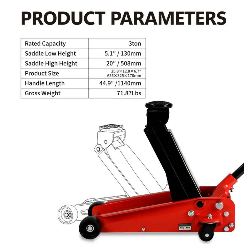 Floor Jack, Low Floor Jack, Steel Racing Floor Jack With Dual Pistons Quick Lift Pump Fits Most Cars, Trucks And Suvs, 3T/5.1"-20"