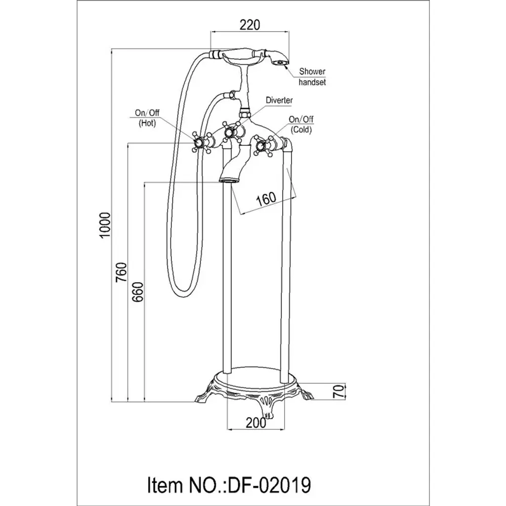Floor Mounted Clawfoot Tub Faucet Trim