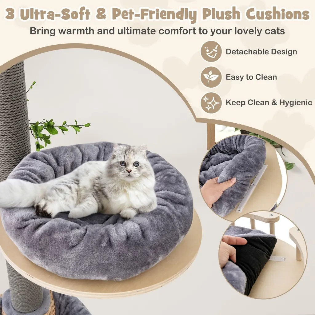 Floor To Ceiling Cat Tree With 93 Inch-107 Inch Adjustable Height - Multi