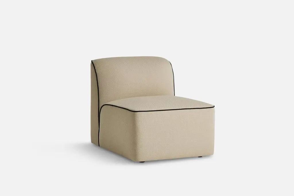 Flora middle module 66 by YonohMaterials: plywood, foam, webbing, wood, fabric (Kvadrat Vidar 0323)Dimensions: D 90 x W 66 x H 70 cmAlso available in different colours and materials. Please contact us.The founders, Mia and Torben Koed, decided to put their 30 years of experience into a new project. It was time for a change and a new challenge. The challenge was to build an ambitious design brand from the ground up with high-quality materials and great attention to the little details. With a drive to create new originals, the WOUD collection is founded upon the idea to look ahead instead of looking back and share the love for honest design. Therefore, we are eager to discover and develop new ideas whether it being in form, function or choice of material. Yonoh is a creative studio based in Valencia, Spain, founded by Clara del Portillo and Alex Selma in 2006. Both industrial designers by training. The two met as young designers at an exhibition in 2004 and at the end of 2006, they could present their first collection together as Yonoh. The studio is characterized by its simple and functional designs. With this combination, they aim to create innovative and original designs. Their versatility, timelessness and adaptability are the cornerstones of the work done in their studio. In order to share their clear envision, they give lectures and workshops around the world promoting the Yonoh way of work. Yonoh believes that the best designs are those that make an object simple and natural. The Flora modular sofa is inspired by the natural shapes of vegetation. Together with its soft and voluminous shapes, Flora is designed to compose perfectly while staying organic and soft shaped.