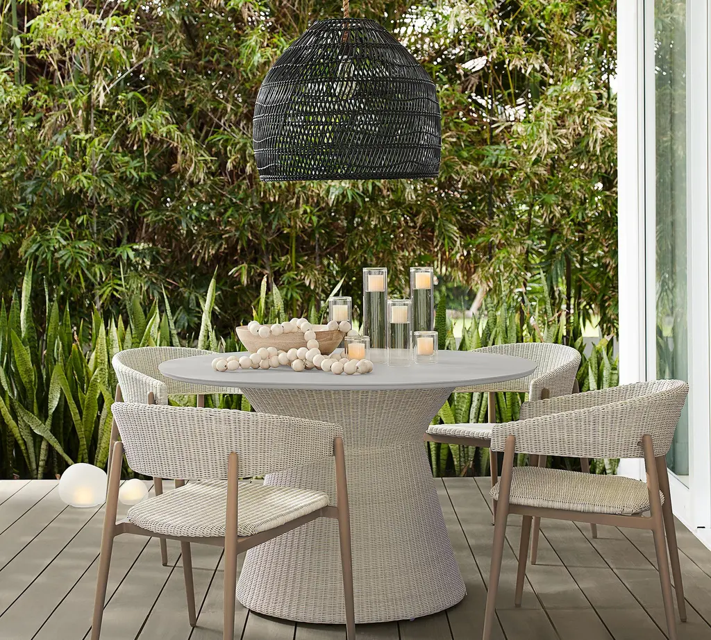 A stunning, natural statement, Flora has eye-catching texture. The airy weave celebrates the look of rattan fishing baskets, yet it's designed to be perfectly outdoor-friendly. It has a relaxed, airy feel that complements coastal homes and softens modern spaces, indoors or out.