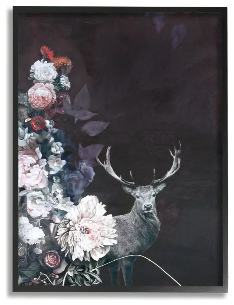 Floral Arrangement And Buck Antlers Vintage Design ,1pc, Each 11 X 14