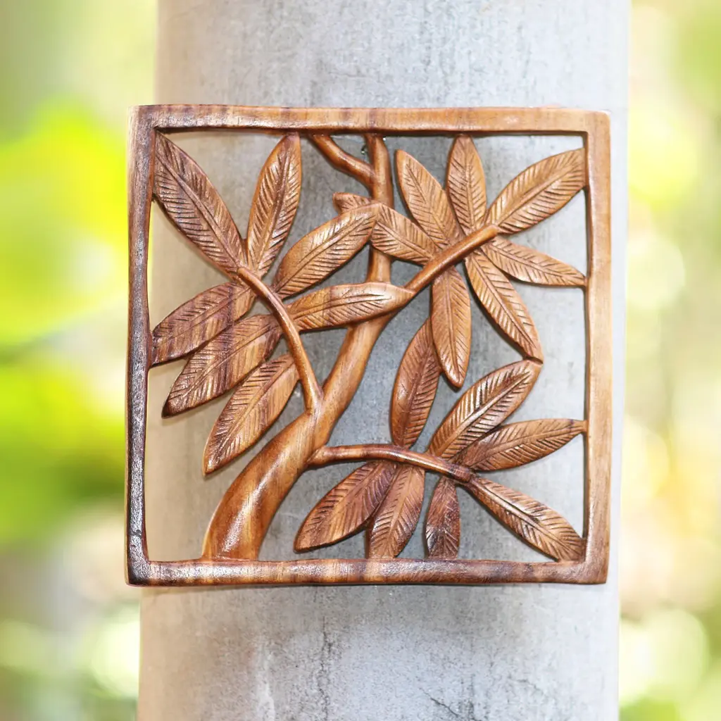 Floral Butterfly Suar Wood Relief Panel Crafted In Bali- Butterfly On A Flower