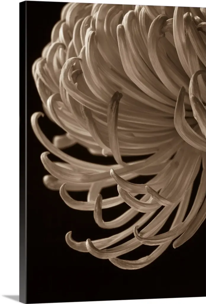 This closely taken photograph is of a flower with some of it's thin petals hanging down.