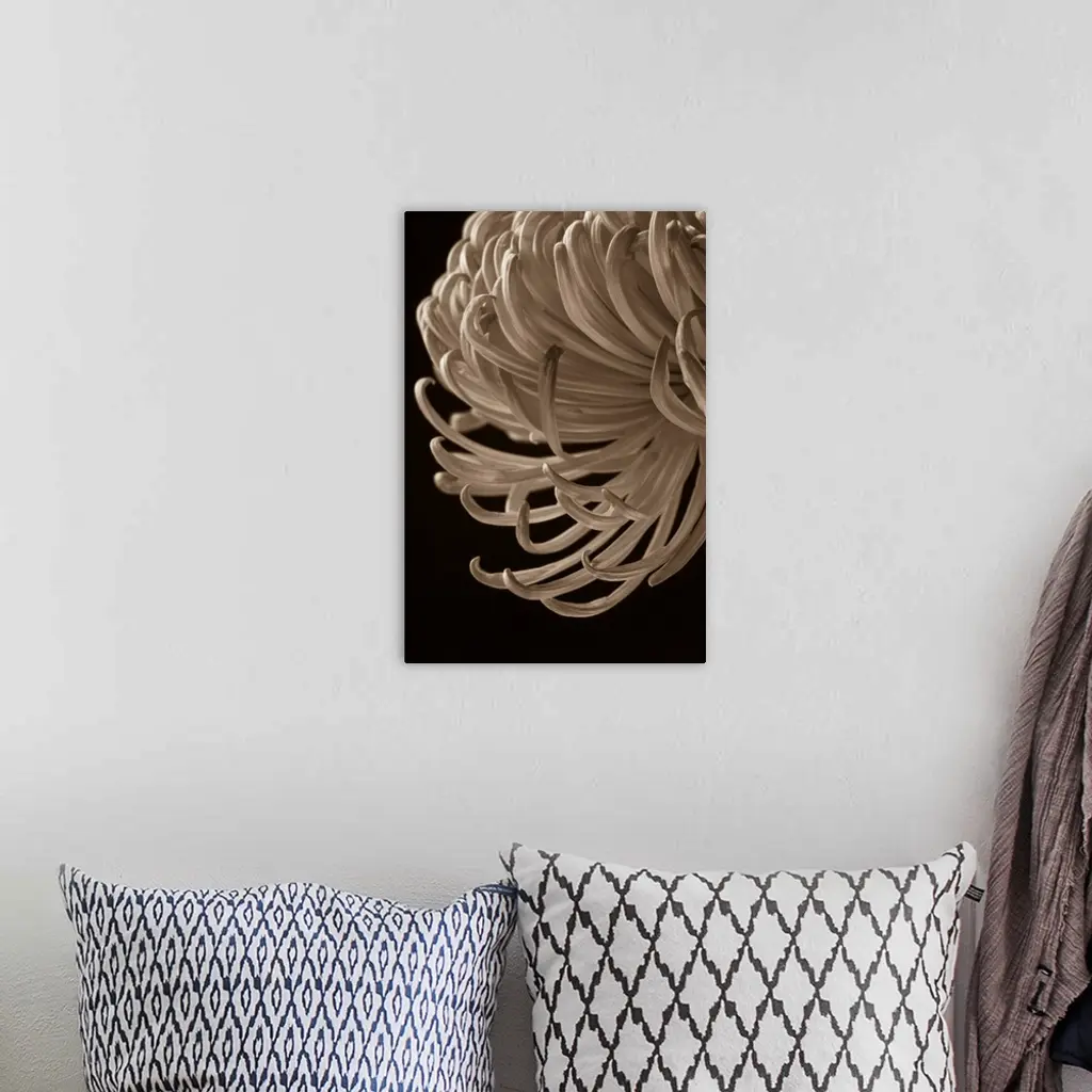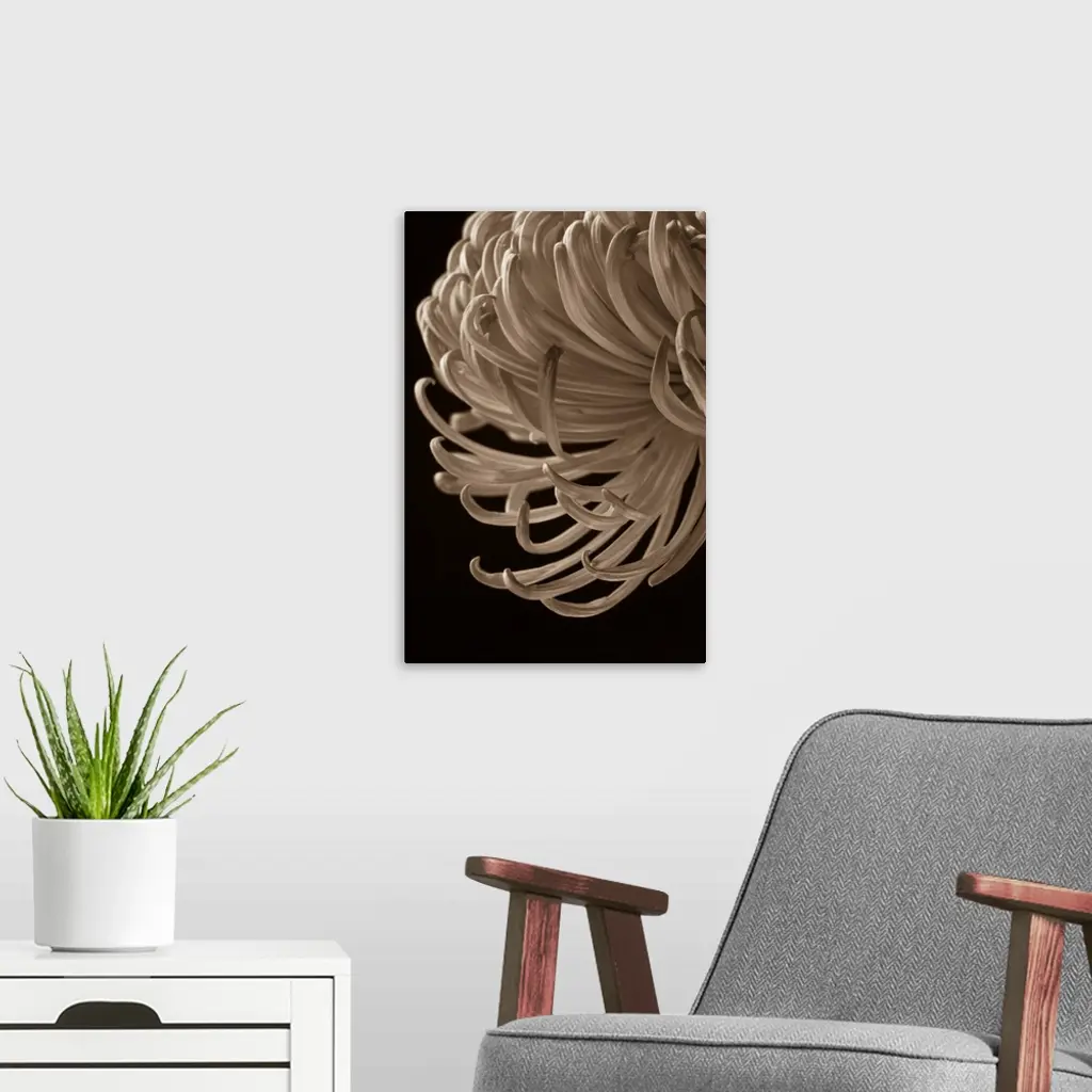 A contemporary close up of a cascading Crysthamum flower sepia toned.