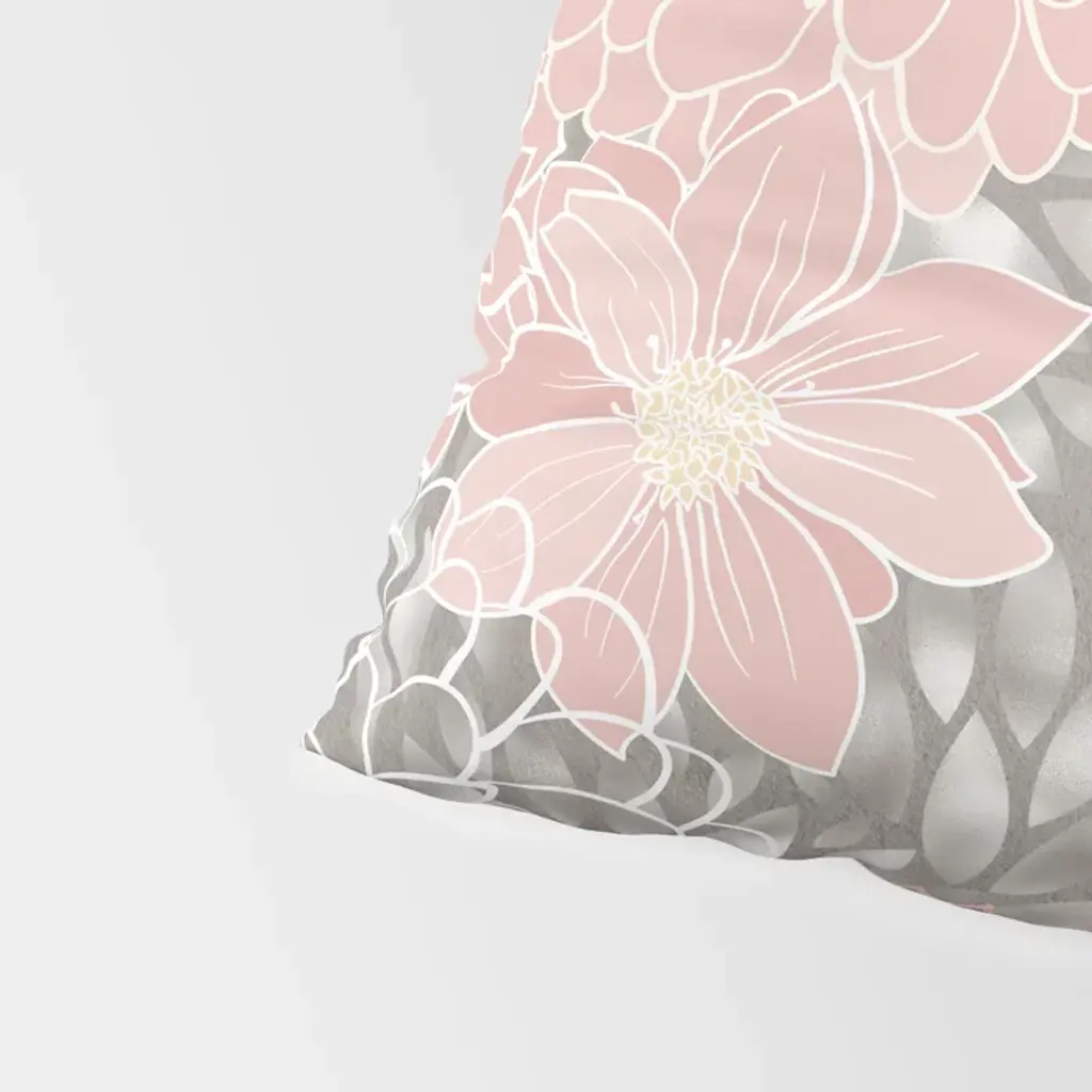 Floral Dahlias, Blush Pink, Gray, White Pillow Sham