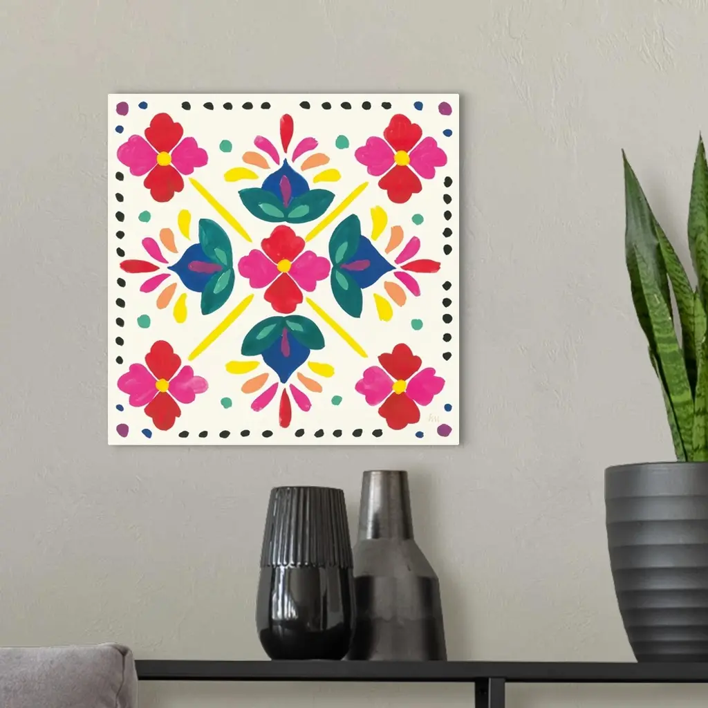 Floral Fiesta White Tile I wall art for home and office decor. Discover canvas art prints, photos, mural, big canvas art and framed wall art in GreatBigCanvas.com's varied collections.