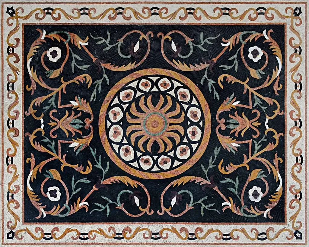 Floral Geometric Floor Mosaic Iii - 195cm X 156cm (78'' X 62'') / Without Frame