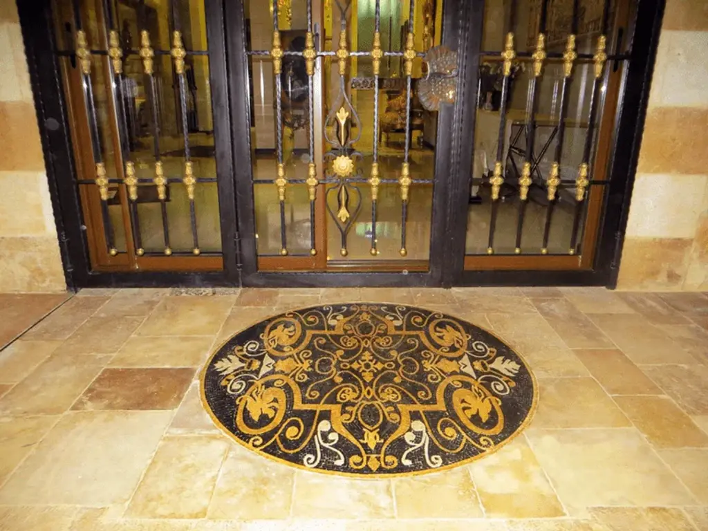This is a handmade medallion marble mosaic that is composed of all natural stones and hand cut tiles that can be used as a unique decoration idea for a wall mural or other uses as you see fit such as such as a mosaic countertop tabletop or on a marble floor.
