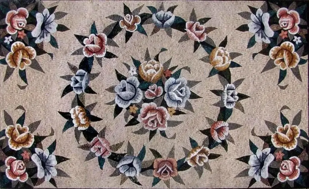 Transform your living space with our exquisite Floral Mural Mosaics, a stunning representation of artistry and elegance. Handcrafted from natural stones, each piece is meticulously cut and assembled by skilled artisans, ensuring that your mosaic is not only visually striking but also of the highest quality.Our Floral Mural Mosaics feature intricate floral designs that bring a touch of nature indoors, creating a serene and welcoming atmosphere. Perfect for use as a floor inlay or a captivating wall mural, this mosaic is a versatile decoration that enhances any area of your home, be it indoors or outdoors.Imagine the charm and beauty this mosaic will add to your living space. The vibrant colors and detailed patterns work together to create a stunning focal point in any room, whether it's your living room, entryway, or even garden. These mosaics are not just decorative; they are a testament to craftsmanship and an investment in your home’s aesthetic appeal.Durable and resilient, our Floral Mural Mosaics are designed to withstand the test of time, making them suitable for both high-traffic areas and serene outdoor spaces. With each piece crafted by hand, you can be assured that no two mosaics are exactly alike, adding a unique character to your home.Elevate your home decor with the exquisite beauty of Floral Mural Mosaics. Whether you are looking to add a touch of elegance to your interiors or a splash of color to your outdoor spaces, these mosaics will breathe life into your surroundings and create an inviting atmosphere for family and guests alike. Explore the endless possibilities of design and make a statement with our Floral Mural Mosaics today.