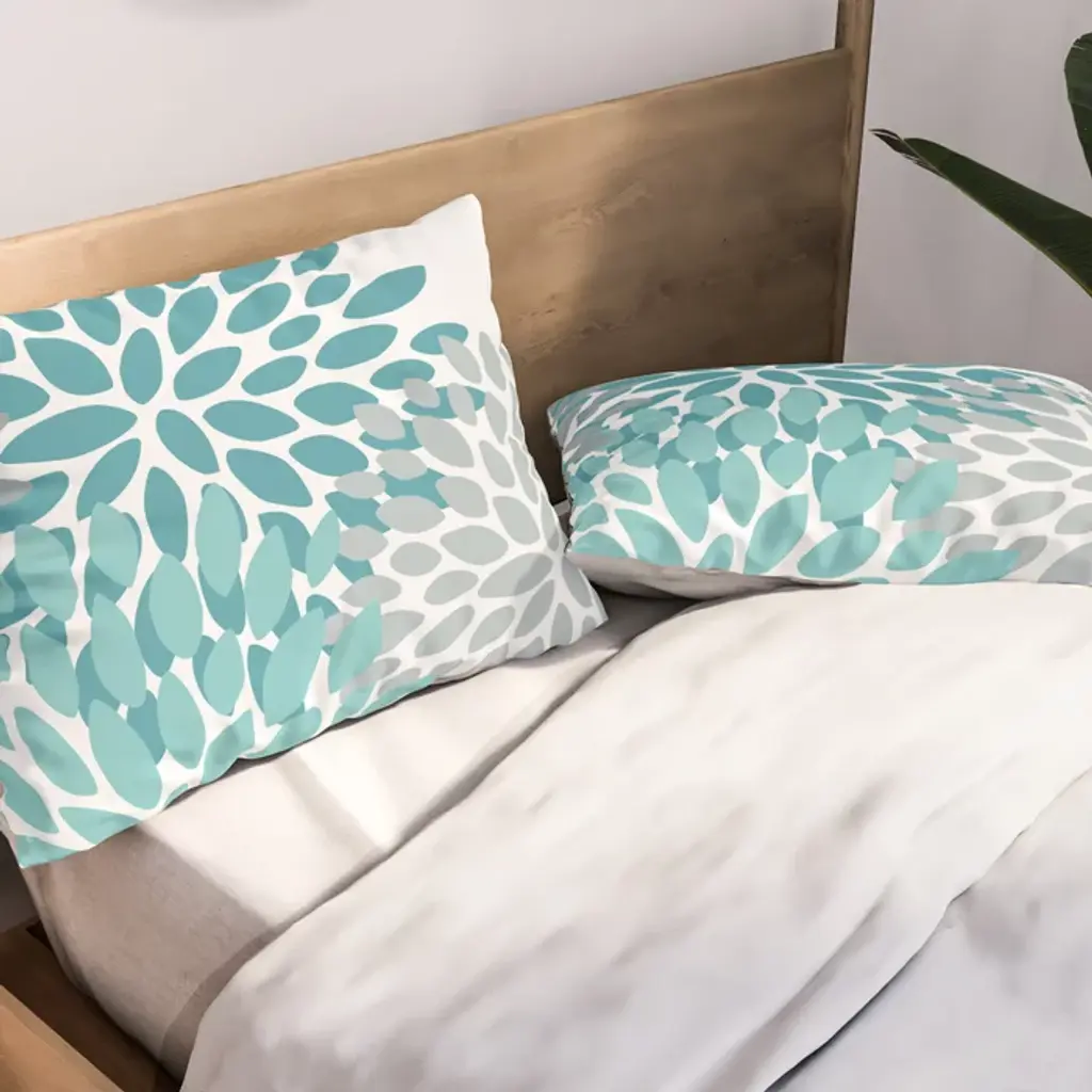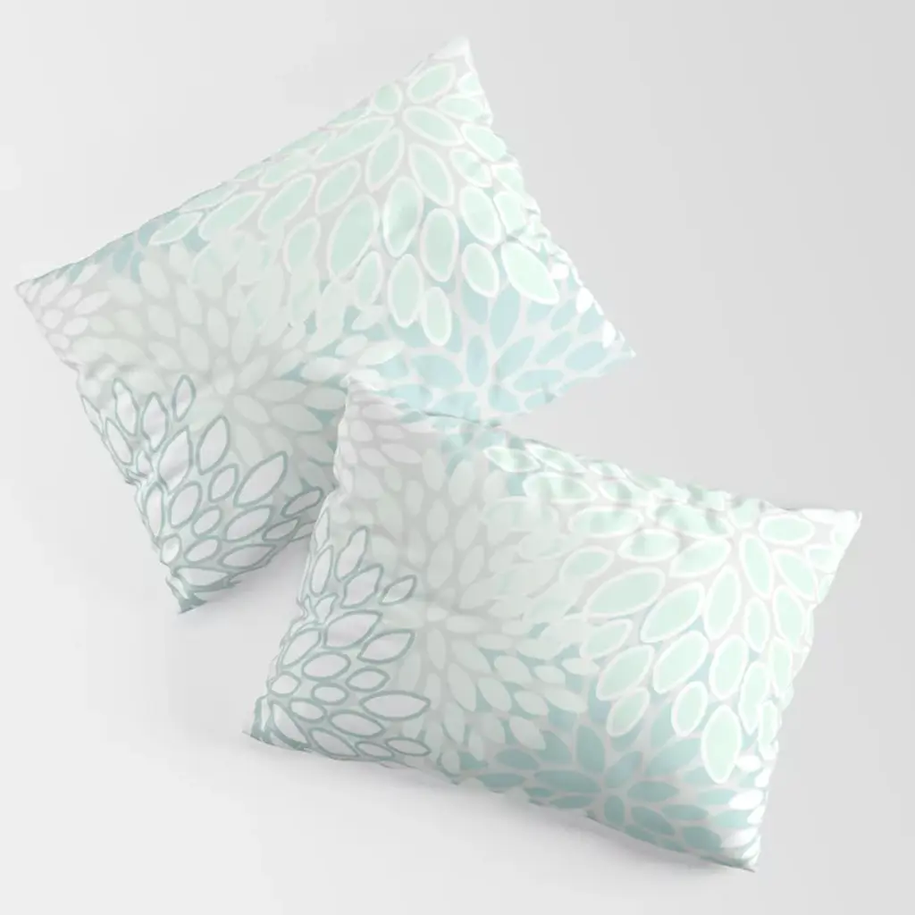 Floral Pattern, Aqua, Teal, Turquoise And Gray Pillow Sham