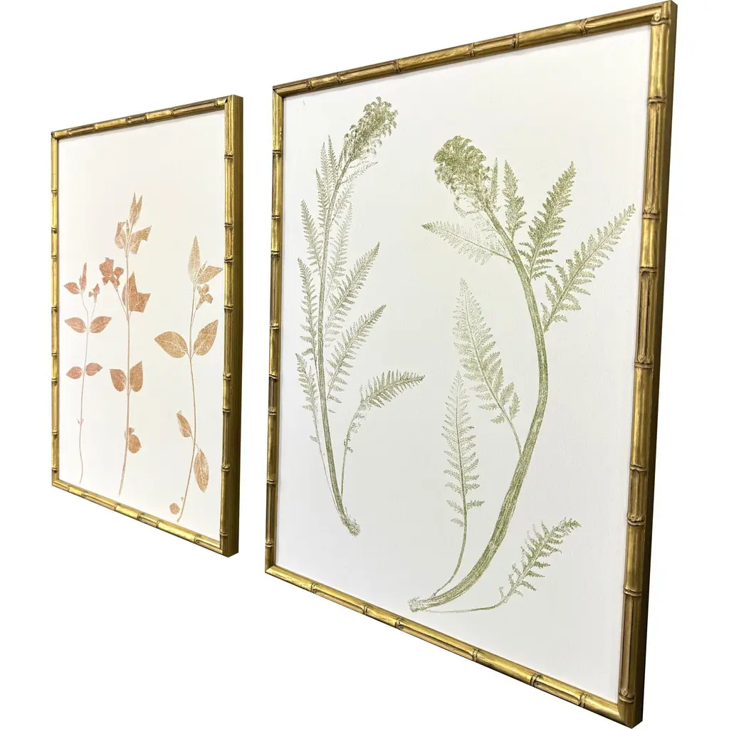 Giclee's blend botanical imagery with a modern twist. A traditional antique gold wood frame with bamboo pattern embossing adds a timeless elegance.