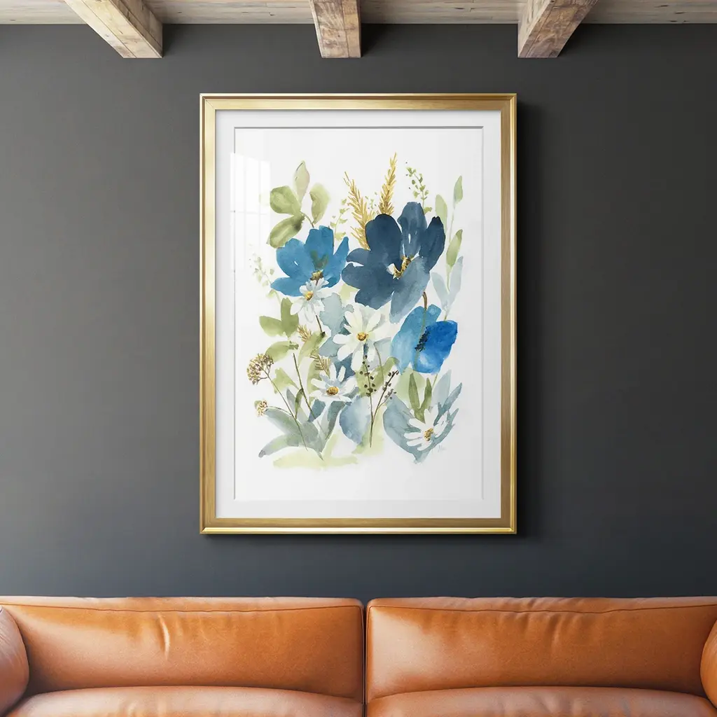 A set of two floral images that are accentuated with double matting. These pieces are framed under glass and paired with a champagne frame.