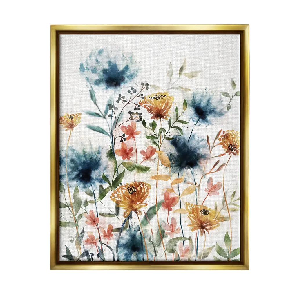 A cheerful floral features a hand applied enhanced gel finish. Dimensionally framed in a champagne gold finish molding.