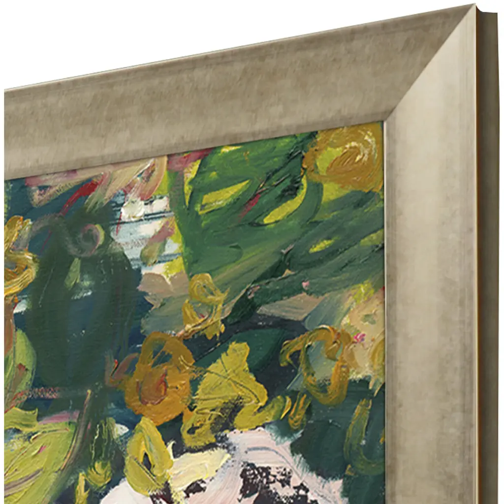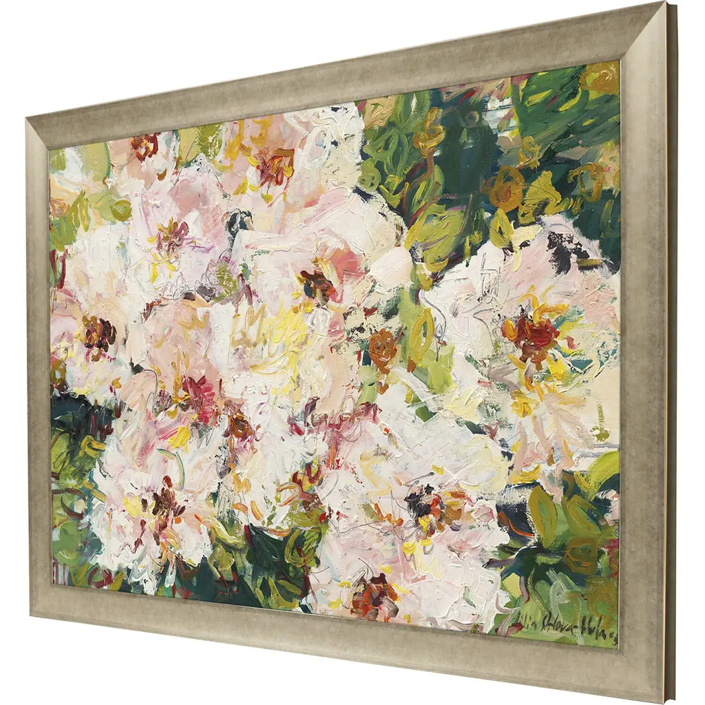 A sprawling cluster of pink roses overflows with endless beauty. Framed in a champagne gold finish moulding.
